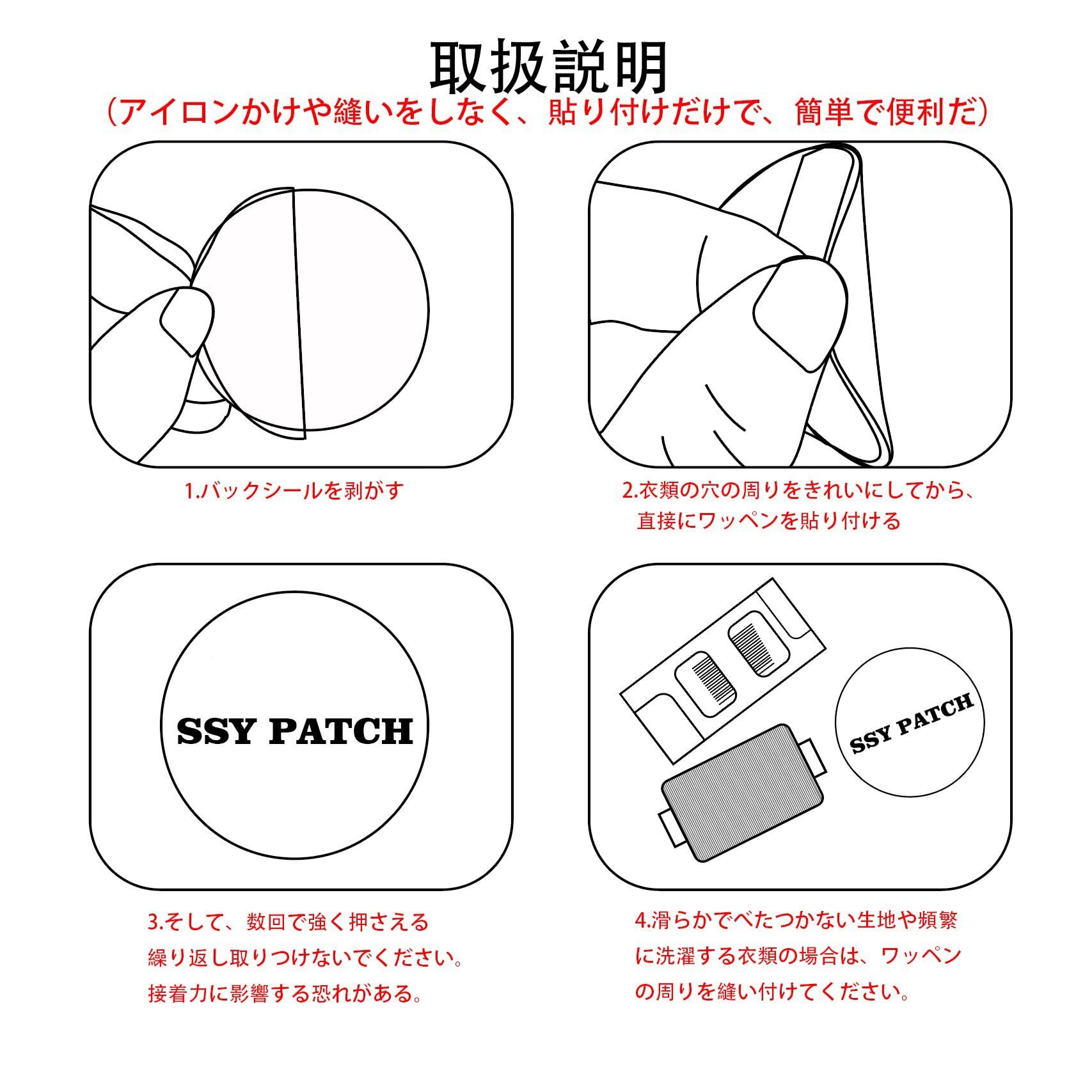 シールタイプの使い方:のりシールタイプので、完全に湿ったり、乾かないものに貼り付けないでください。のりシールで紙製品や皮革製品に貼り付けている場合は、剥がすと、取り付け面を傷つける可能性があります。長期間の貼り付けにより、衣類などの製品にのり残りする恐れがあります。 アイロン接着タイプの使い方:平らなアイロン台と白いあて布を準備してください。(あて布はワッペンにのせて、アイロンの高温によるワッペンと衣類への傷みを防ぎます。)1.ワッペンをつけたい位置に置いてください。2.あて布をのせて、アイロン温度をドライ中温に設定して、約20~30秒間しっかりと押さえてください。3.また、より強力な接着ができるために、反対側もアイロンかけをしてください。(完全に冷めるまでは動かさないでください。)※厚い生地や幅広い織物に貼り付けた場合は、適切にアイロンかけ時間の拡張とより強いプレスが必要になります。縫い付けをおすすめ:長時間に使いたい場合,頻繁に洗濯する場合,しっかり付けたい場合。 使用上のご注意:1洗濯の場合は水洗いしてください。2塩素系漂白剤で洗濯しないで、ドライクリーニングも不可。3アクリル合成繊維など熱に弱い布地に貼り付ける場合は、アイロンがけに特に温度をご注意ください。 4防水加工生地、撥水加工生地、湿ったり、乾かない製品に貼り付けないでください。5凹凸感ある織物には、接着力が弱いので、縫い付けをお勧めます。. 注意:乳幼児を保育する方は必ずお読みください。この製品にはアイロンの使いが必要です。乳幼児がいると、アイロンを使用する際にやけどをご注意ください。 手作業による測定のため多少の誤差を許容してください。照明効果やモニターの明るさ/コントラスト設定などにより、商品の色が写真と多少異なる場合がありますのでご注意ください。ご理解ください。