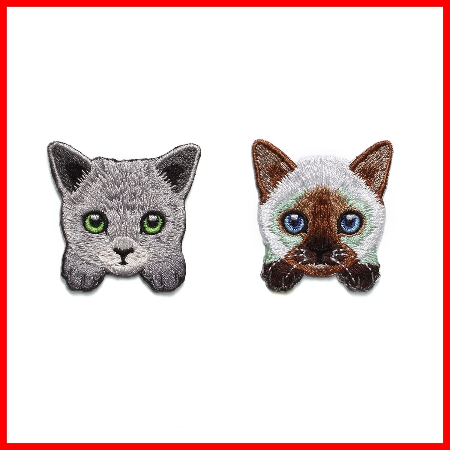 SSYSSY 刺繍 ワッペン アイロン接着両用タイプ 动物 猫 2個入 手芸 DIY用品 (A006)