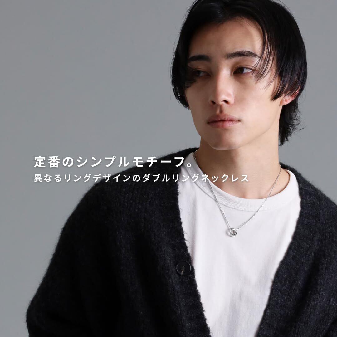 【"タテガミ"の彫りがアクセントのダブルリングネックレス】ブランドの象徴であるライオンの「タテガミ」を落とし込んだリングと柔らかくツイストしたリングを組み合わせました。