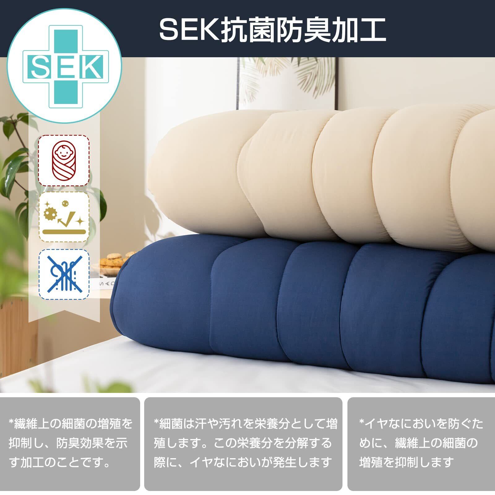 【抗菌防臭加工】SEK認証された優れた抗菌防臭加工・低ホルムアルデヒド・通気性抜群の敷き布団であなたの快適な睡眠をサポートします。毎日使うものだから、抗菌防臭加工を施し、細菌の増殖を抑制する効果があります。国際規格”ISO9001”認定工場で生産して、厳しい品質管理を施します。安心してご利用いただけます。