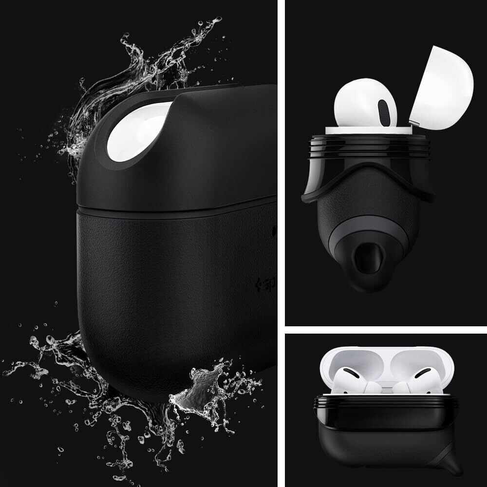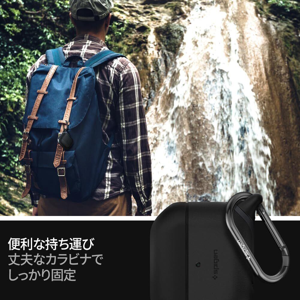 Spigen Apple AirPods Pro ケース (2022/2019) カバー [ 防水 防塵 IP67等級 カラビナ リング 付き ] シリコン 収納ケース 軽量 キズ防止 ワイヤレス充電 対応 エアポッズ プロ 防水カバー スリム・アーマー IP ASD00542 (ブラック) | hananoki