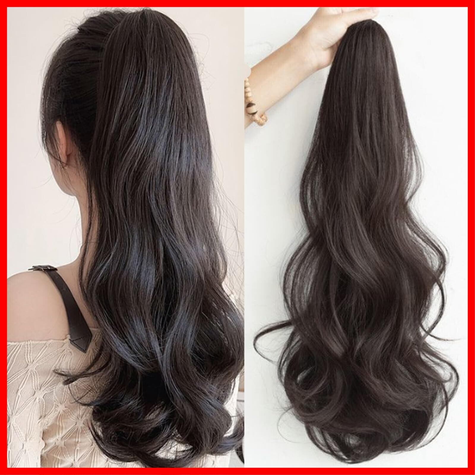 ポニーテール ポイントウィッグ カール ロング ポニーテールウィッグ ウィッグ 巻き髪 55cm 簡単クリップ式 エクステ ウィッグ ポニーテール ロング 自然 (ブラウンブラック)