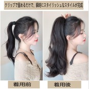 クリップポニー着け方:1.ウェーブタイプなのでお手元に届いてから好きなボリュームにほぐしてください。2.ポニーテールウィッグを毛先からブラッシングし整えておきます。3.ゴムの上の自毛をクリップポニーウィッグではさんで留めます。