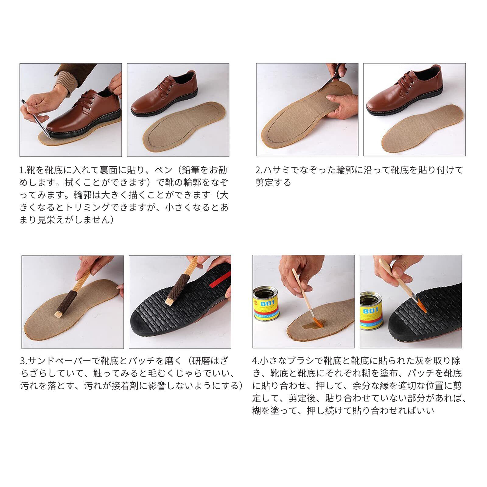 【多用途で便利】靴底の補修だけでなく、スニーカーやブーツの滑り止め対策、さらには子供靴の修理にも最適です。男女問わず幅広いシューズタイプに対応しており、手軽に靴をアップグレードできる便利なアイテムとなっています。