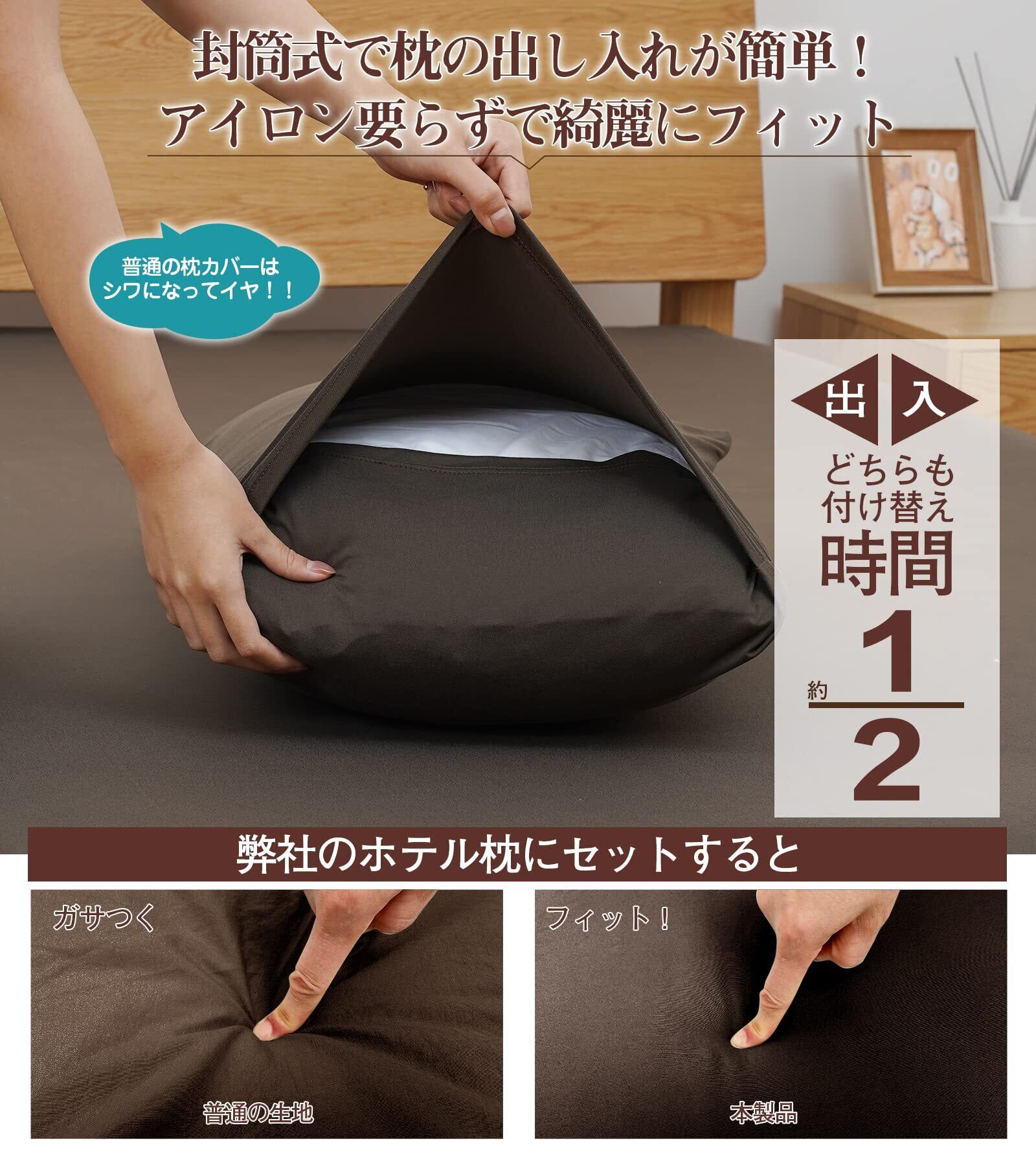 【3D伸びる・Tシャツ肌触り】のびのび枕カバー 2枚セット オールシーズン Tシャツ素材 封筒式 ピローケース 柔らかい ピローカバー さらさら肌触り 吸汗速乾 抗菌防臭 枕カバー 50x70 CM ブラウン