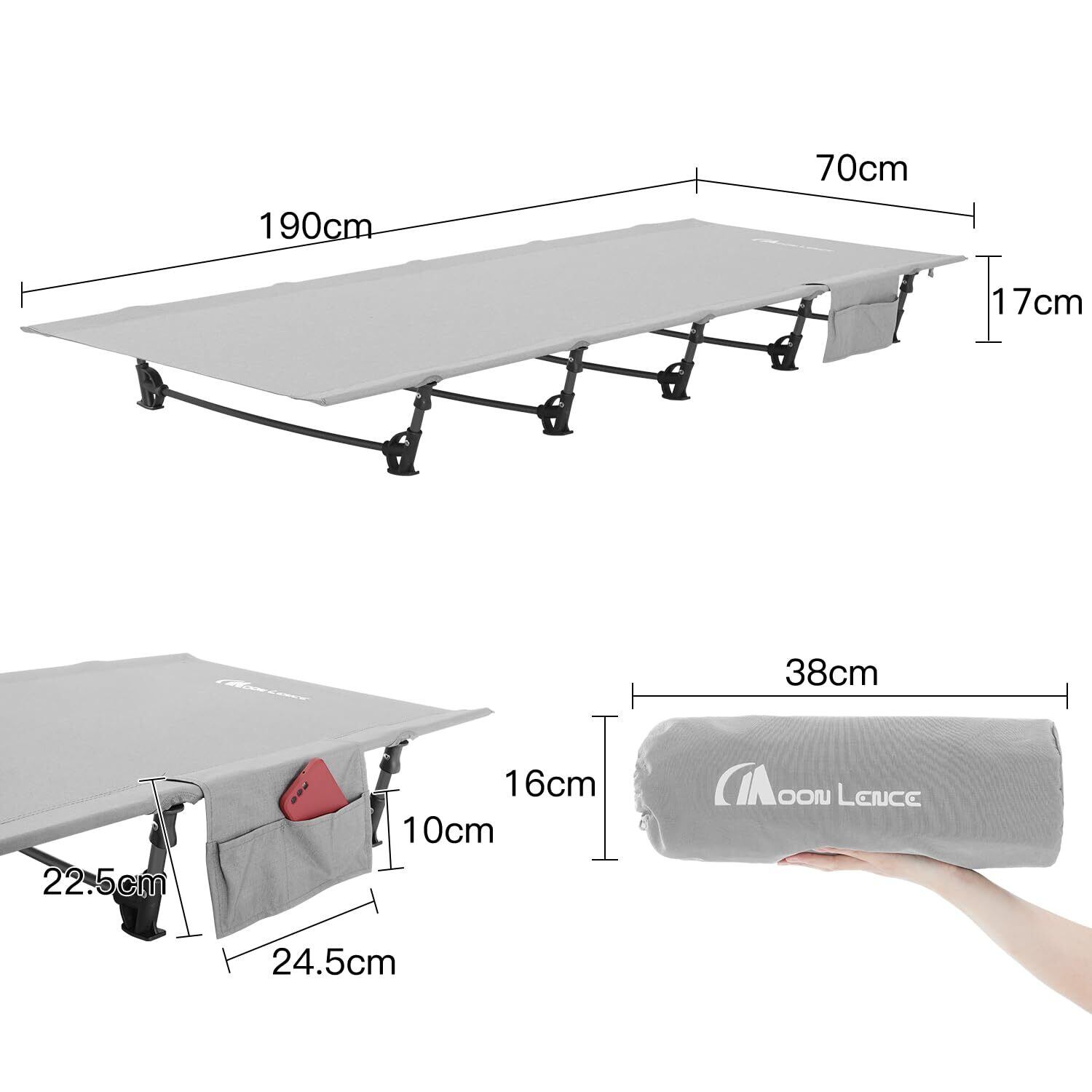 MOON LENCE キャンプ コット アウトドアベッド 折りたたみ キャンプベッド 簡易 コンパクト 超軽量 耐荷重160kg 枕*収納ケース*キャリーバッグ付き 防災 防水 通気性