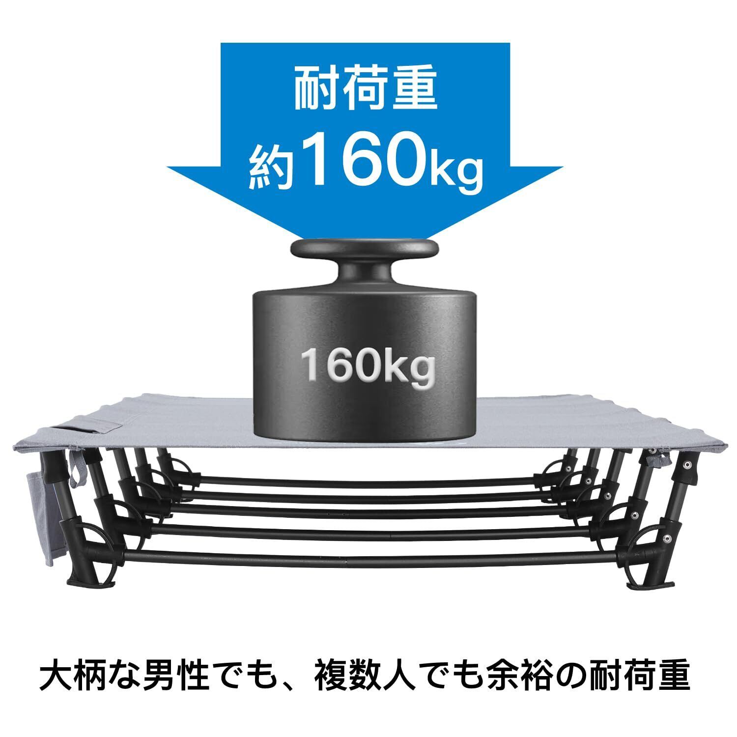 [様々な場所に使えます]耐荷重は160kgで、キャンプ、アウトドアなどの場合で大活躍します。室内で入院の付き添いベッドにも、友達の泊まりにも使えます。