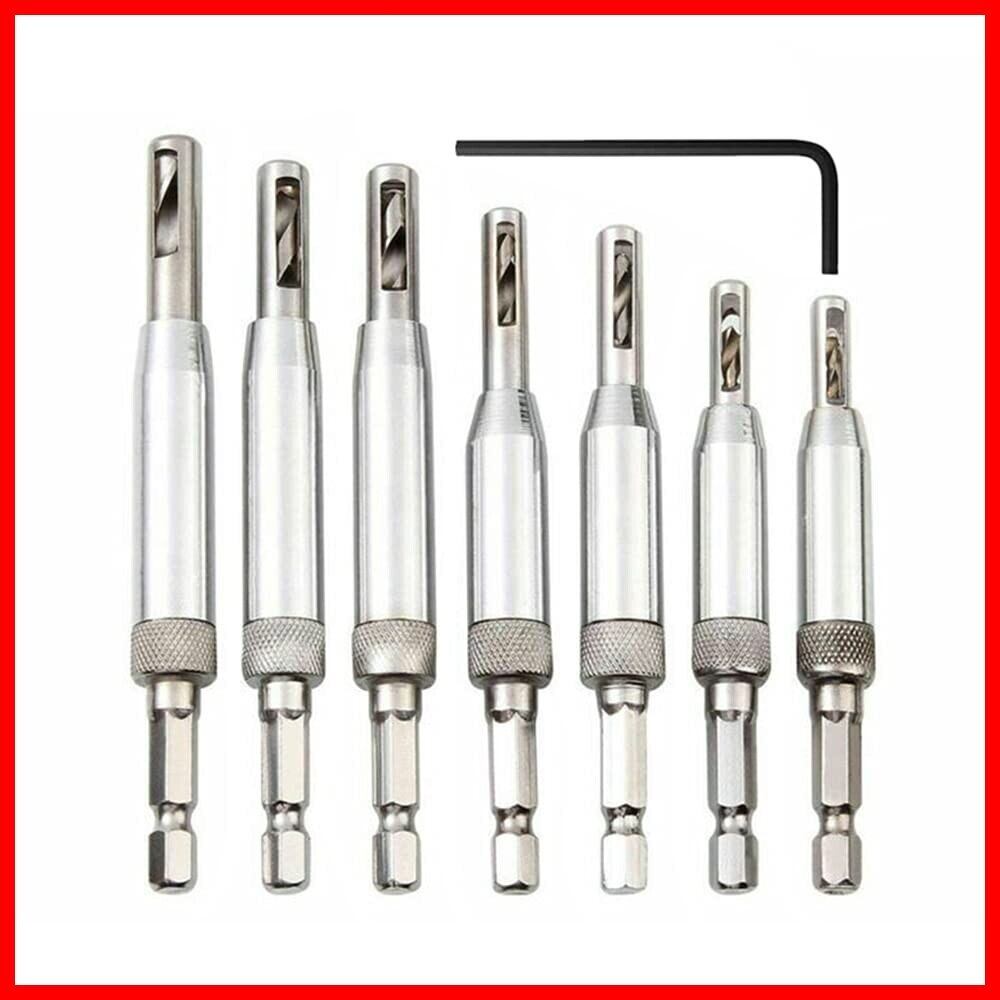 Dophee センタードリルビット センター出し用 ヒンジ蝶番 木工用 穴あけ 六角軸ドリルビット ドリルガイド7本セット