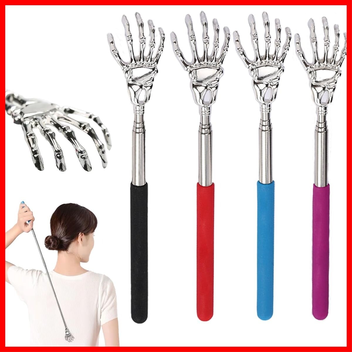 [孫の手 伸縮 背中かき棒 伸びる棒 4枚入り(4色) おしゃれ 伸びる孫の手 携帯にも便利 背中掻き ボディくすぐる コンパクト 痛くない ステンレス製]