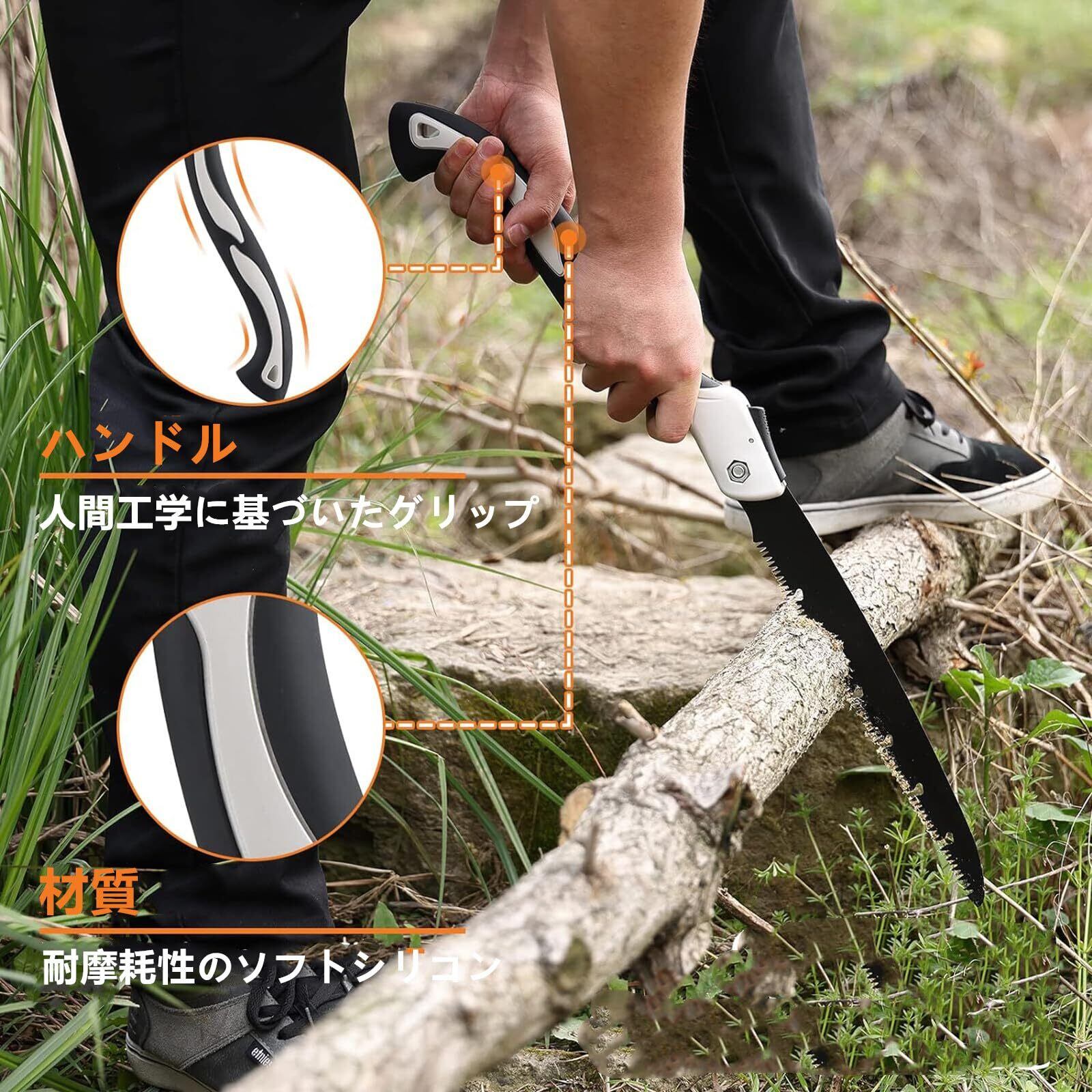 【適用シーン】庭木、造園、果樹、アウトドア、仮枠、乾燥木材の剪定に適用され、枝切りやキャンプの薪作りにもピッタリ!