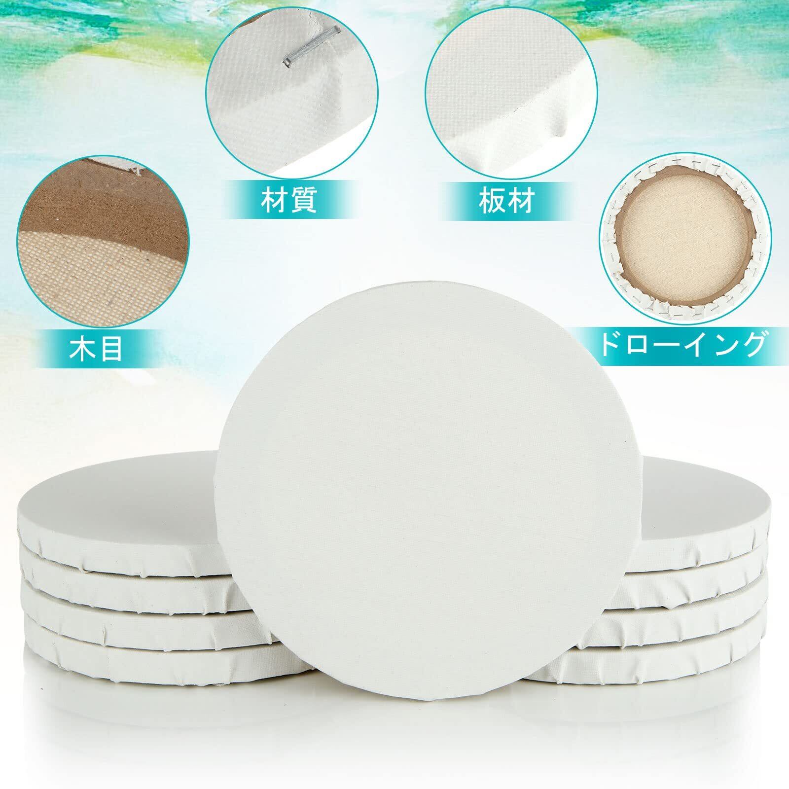 10枚セット キャンバス 丸 キャンバスボード 直径20cm 張りキャンバス 円型 絵画ボード 生地 リンネル 亜麻 画材 水彩 油絵 木製フレーム 部屋飾り 工芸品 子供 初心者 学校 絵画教室 DIY 学習教材 | hananoki