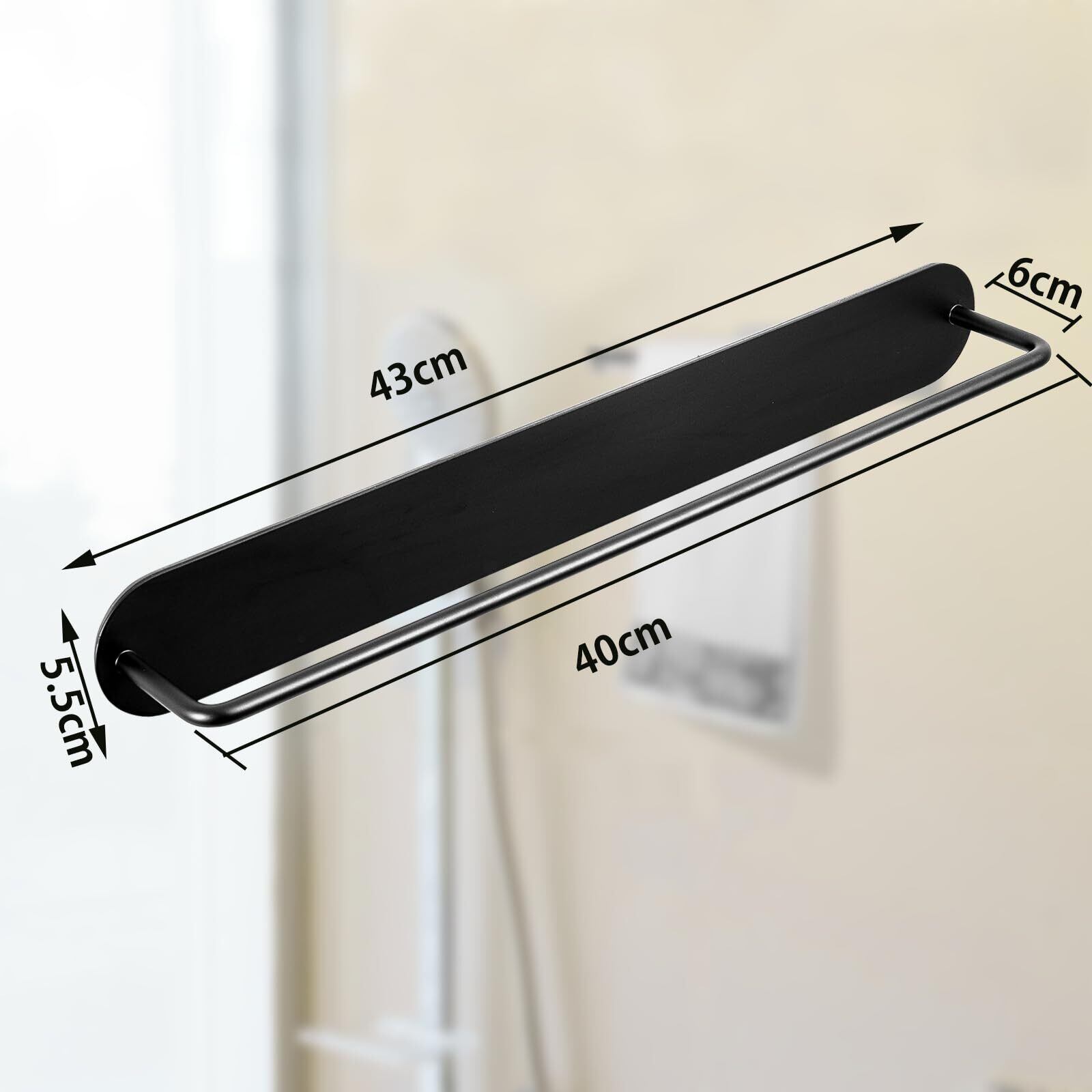 【商品のサイズ】長さ43㎝で幅5.5㎝です。ハンガーは壁まで5.5㎝ありますので、同種類の製品より広く離れています。タオルは風通しや乾燥はしやすくなります