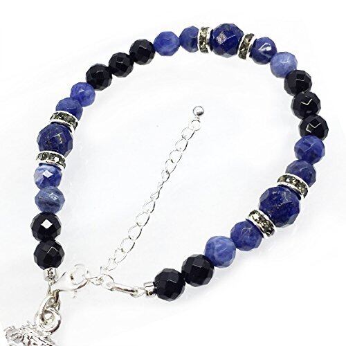 三石のラピスラズリとソーダーライトのブルーグラデーションに重厚なオニキスをコンビにしたクールな天然石ブレスレット。 チャームはお選びいただけません。 ※天然石の為、石の色味に個体差がある場合がございます。