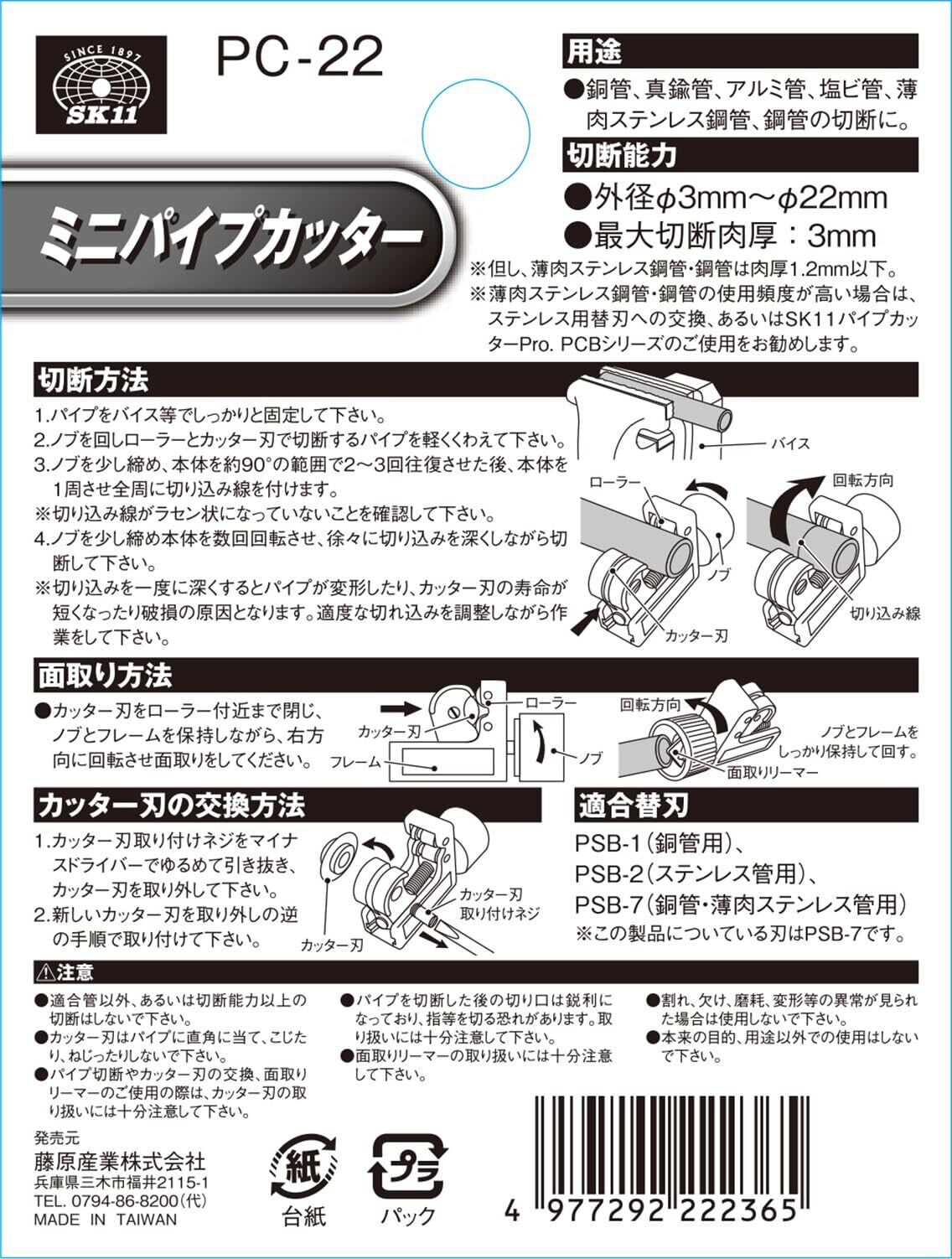 SK11(エスケー11) パイプカッター 幅45×高さ68×奥行き25mm PC-22