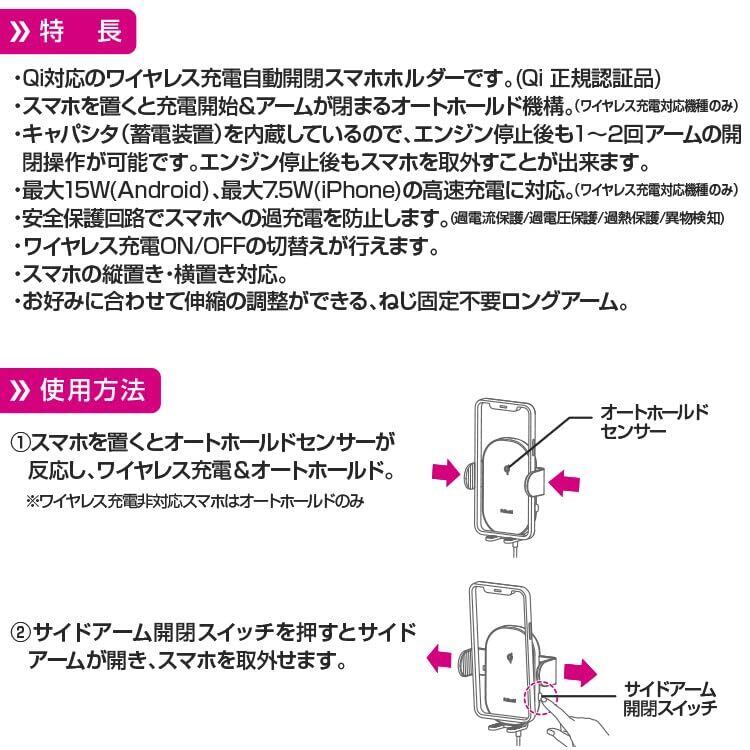 取り外しが便利な自動開閉式でワイヤレス充電対応、ローポジションで視界を妨げない
