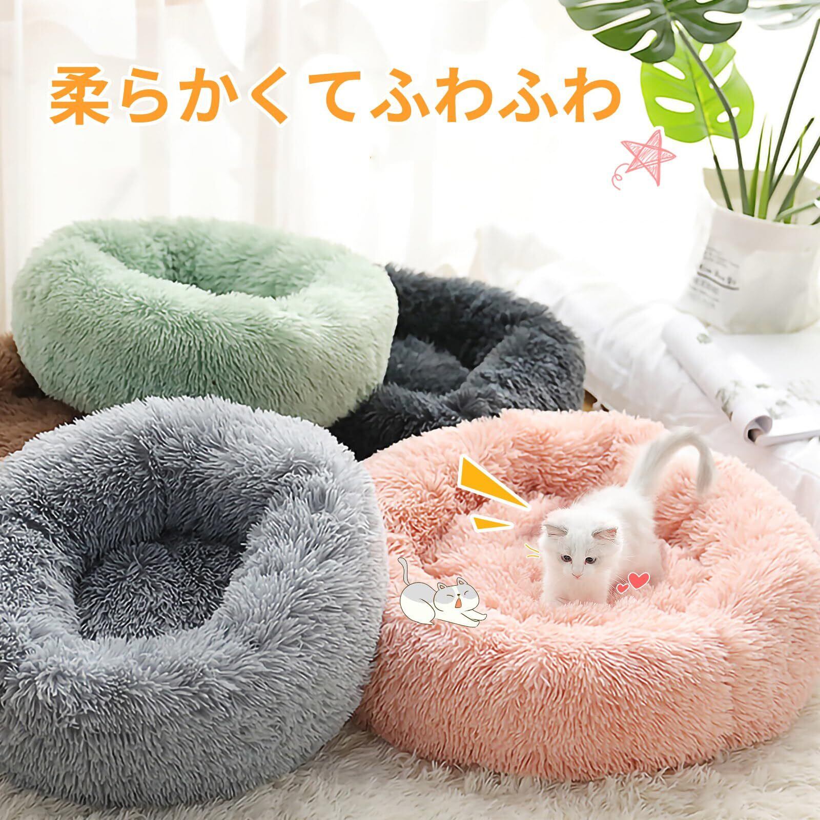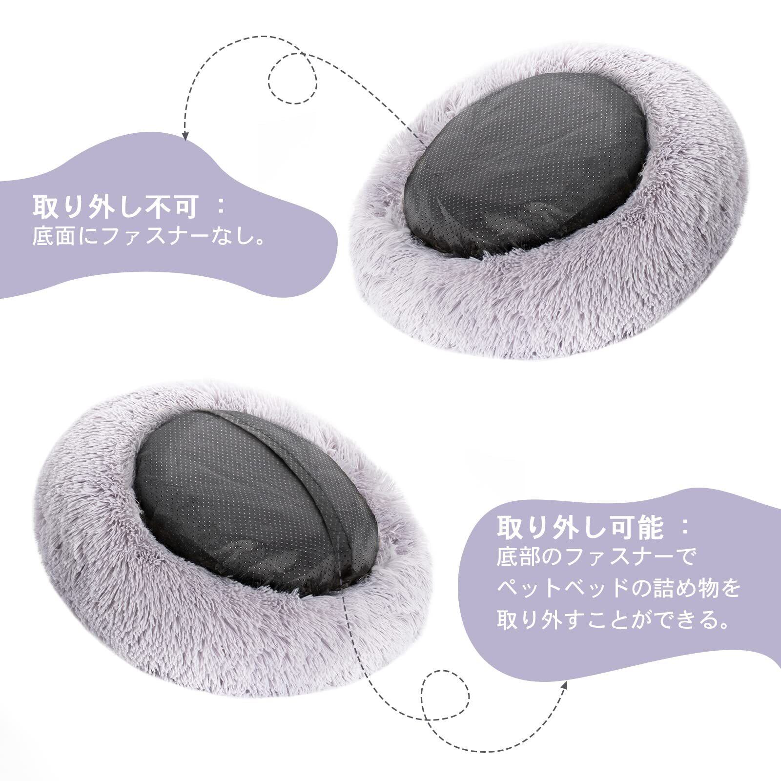 猫 ベッド 犬ベッド ふわふわ ラウンド型 ペットクッション 通年 滑り止め 防寒 暖かい 洗濯可能 子犬 猫用 サイズ選択可 カラー選択可 (50cm, ライトグレー/取り外し可能) | hananoki