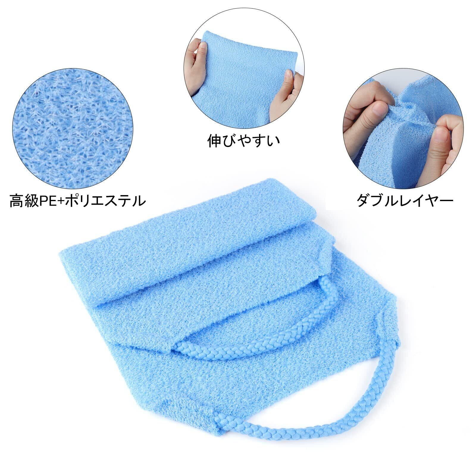 【伸縮可能】: 幅が広くて長いサイズ、通常のバスタオルよりも長い、ストレッチサイズ: 48 x 18.5 cm、伸縮性のある長さ: 90.2 x 18.5 cm、バス角質除去タオルは持ち手付きで、背中全体、体の部分をきれいにします。