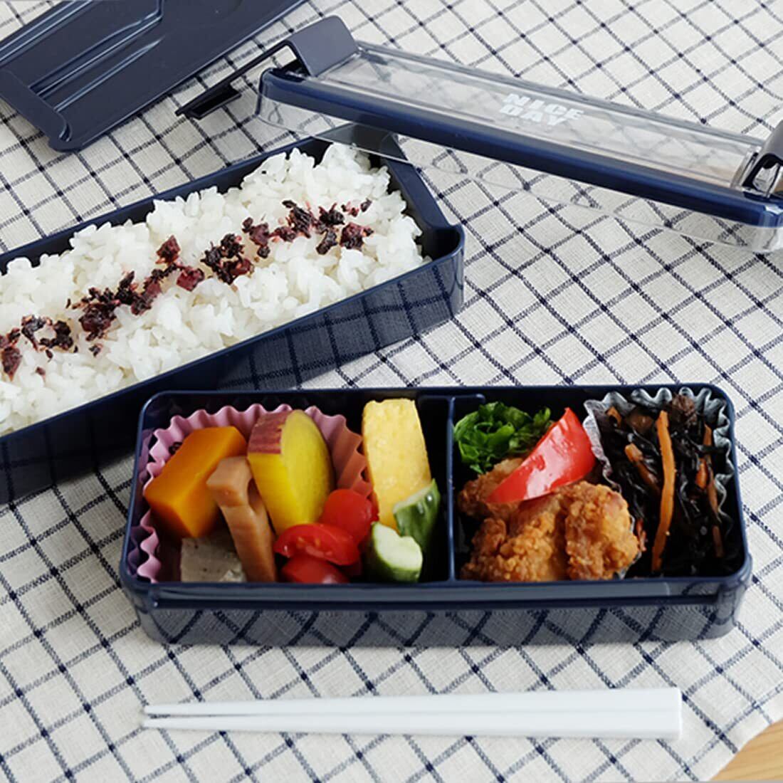 岩崎工業 弁当箱 イージーケア ランチボックス 2段(箸つき) 680ml ネイビー フタ・パッキンが一体で洗いやすい Ag 抗菌 防汚 レンジ対応 食洗機対応 B-1488 NV | hananoki