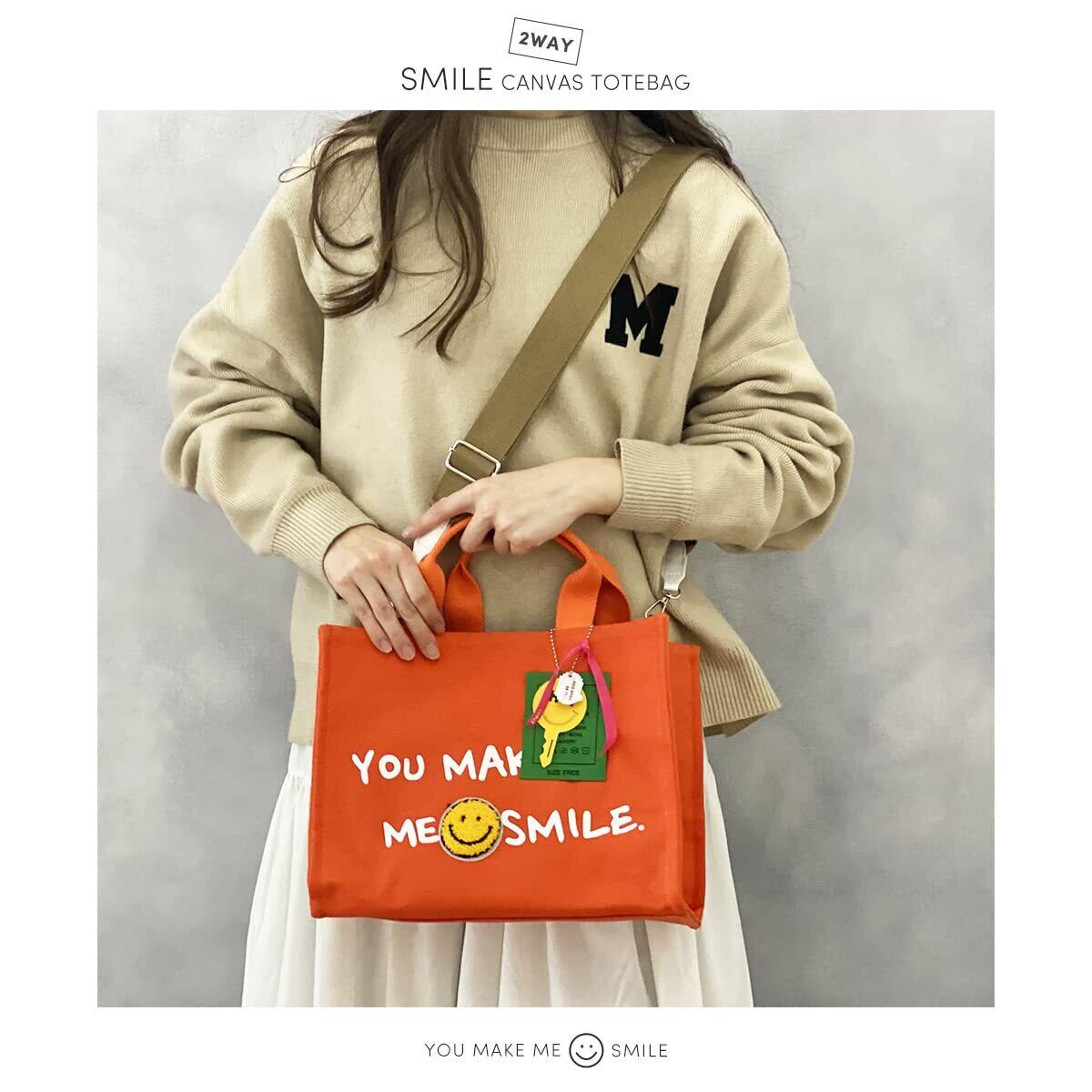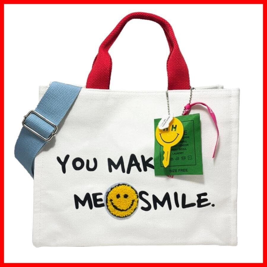 [DIVA Rose] トートバッグ 2way キャンバス ショルダー 斜めがけ スマイル 肩掛け コットン ランチバッグ 大容量 軽量 マザーズバッグ