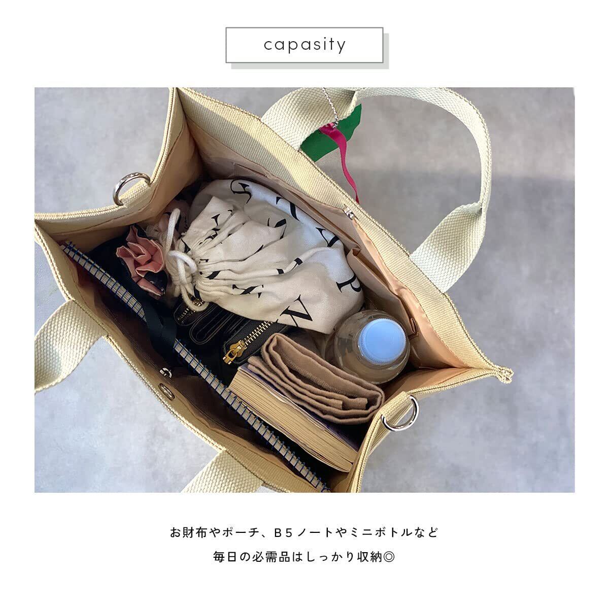 見た目以上に大容量で、お財布やポーチ、B5ノートやミニボトルなど 毎日の必需品はしっかり収納◎