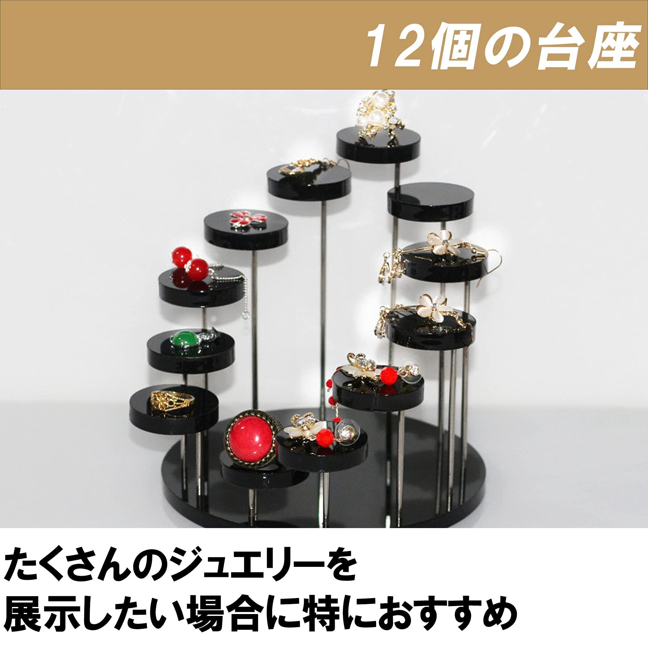 12個のジュエリーを置ける:12個の台座が備わったジュエリーディスプレイスタンドとなっておりますので、たくさんのジュエリーを展示したい場合に特におすすめです。
