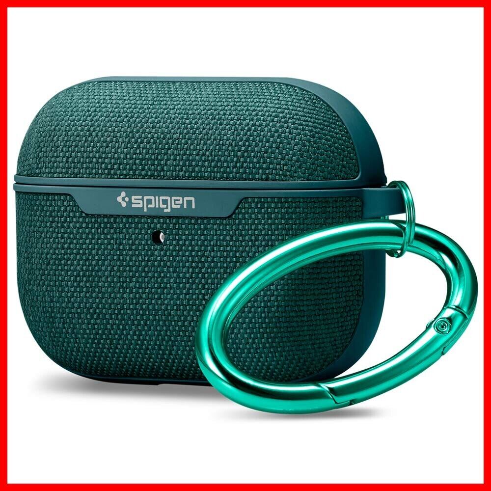 【Spigen】 Apple AirPods Pro ケース カバー カラビナ リング 付き 収納ケース 衝撃 吸収 軽量 キズ防止 耐衝撃 ワイヤレス充電 対応 シンプル エアポッズプロケース シュピゲン アーバン・フィット ASD00825 (ミッドナイト・グリーン)