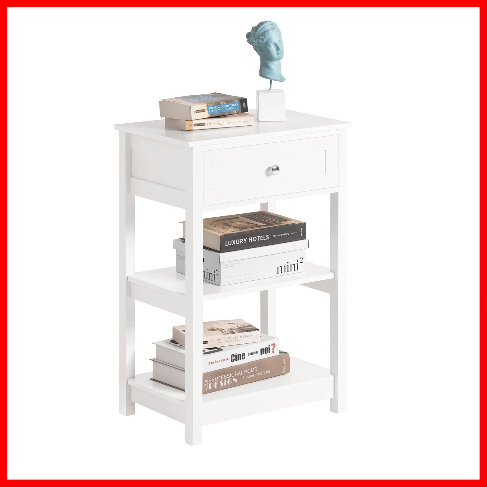 SoBuy サイドテーブル ベッド横 ナイトテーブル ローテーブル ベッドサイドテーブル チェスト おしゃれ ベッドサイド キャビネット 白 幅45×奥30×高68cm ローチェスト 電話台 引き出し付き 北欧風 ソファーサイド ベッド周り収納 (FBT46-W/ホワイト)