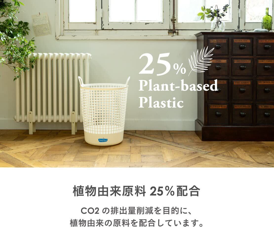 【やわらかく持ち運びやすい】柔軟で軽量なポリエチレン素材で、持ち手を重ねれば、片手でも持て、階段の上り下りや干し場までラクに持ち運びができます。細やかな格子状バスケットで、通気性がよく湿気やニオイを溜め込みません。汚れをはじき、水洗いもできるので、いつも清潔に保てます。植物由来原料25%配合の環境負担を少なくしたバイオマスプラスチックを使用しています。