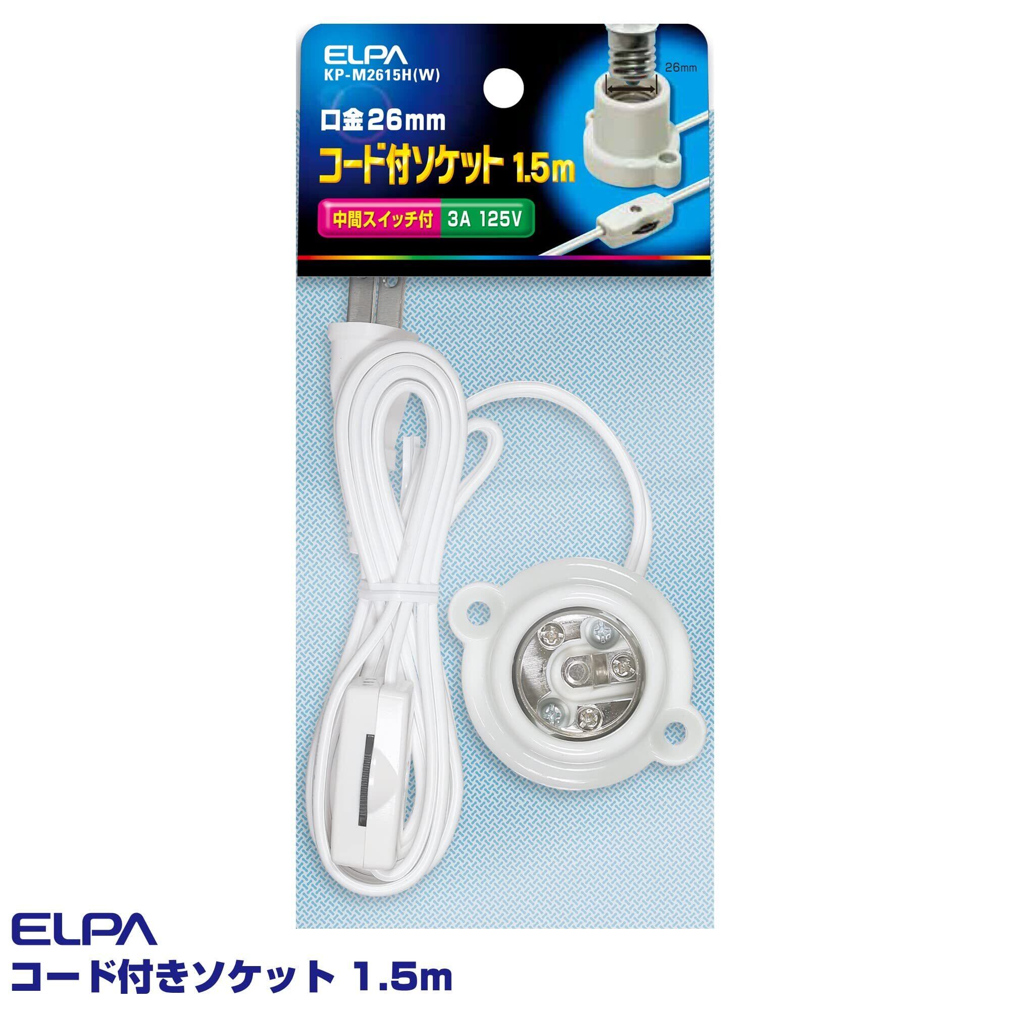 エルパ(ELPA) コード付ソケット ( 口金 E26 / 1.5m / ホワイト) 中間スイッチ付 (KP-M2615H(W))