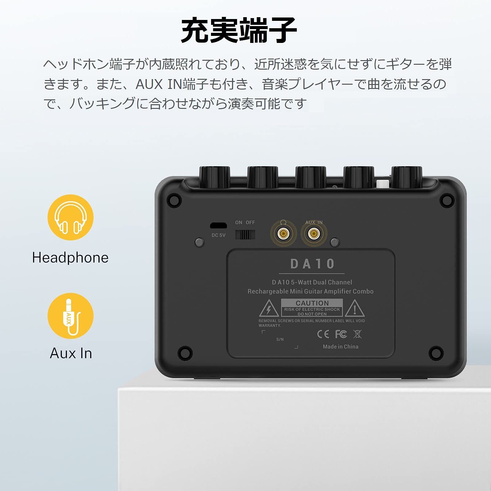 Donner ギターアンプ ミニ 5W 充電式 3バンドEQ搭載 卓上 コンパクト 軽量 自宅練習 Retro British tone DA-10