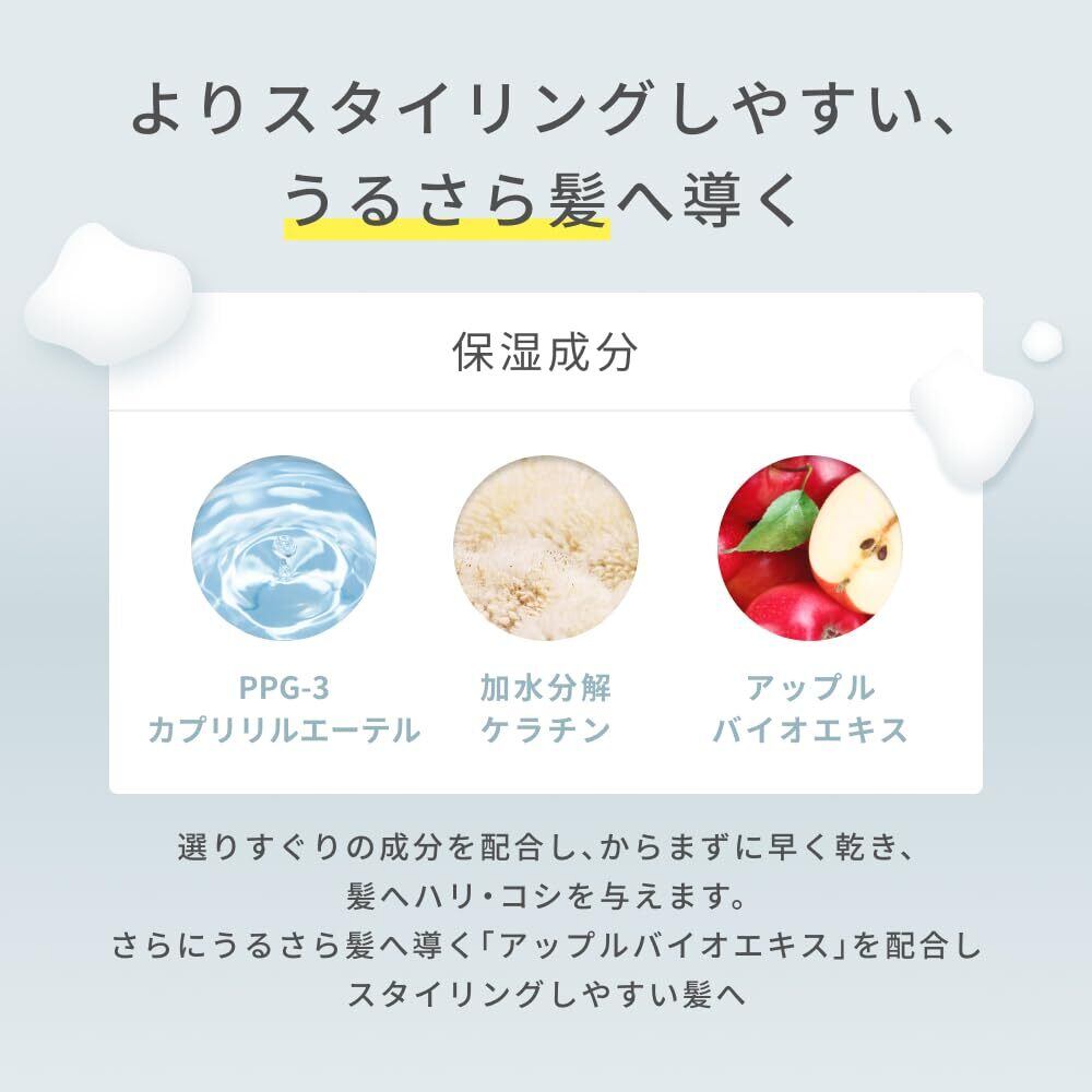 【「仕上がり」の気持ち良さ】洗い上がりの仕上がりにもポイントが。重さで“しっとりまとまる”のではなく、軽さもありながら“さらっと軽やかにまとまる”ことで、サロンで実感するような仕上がりに。