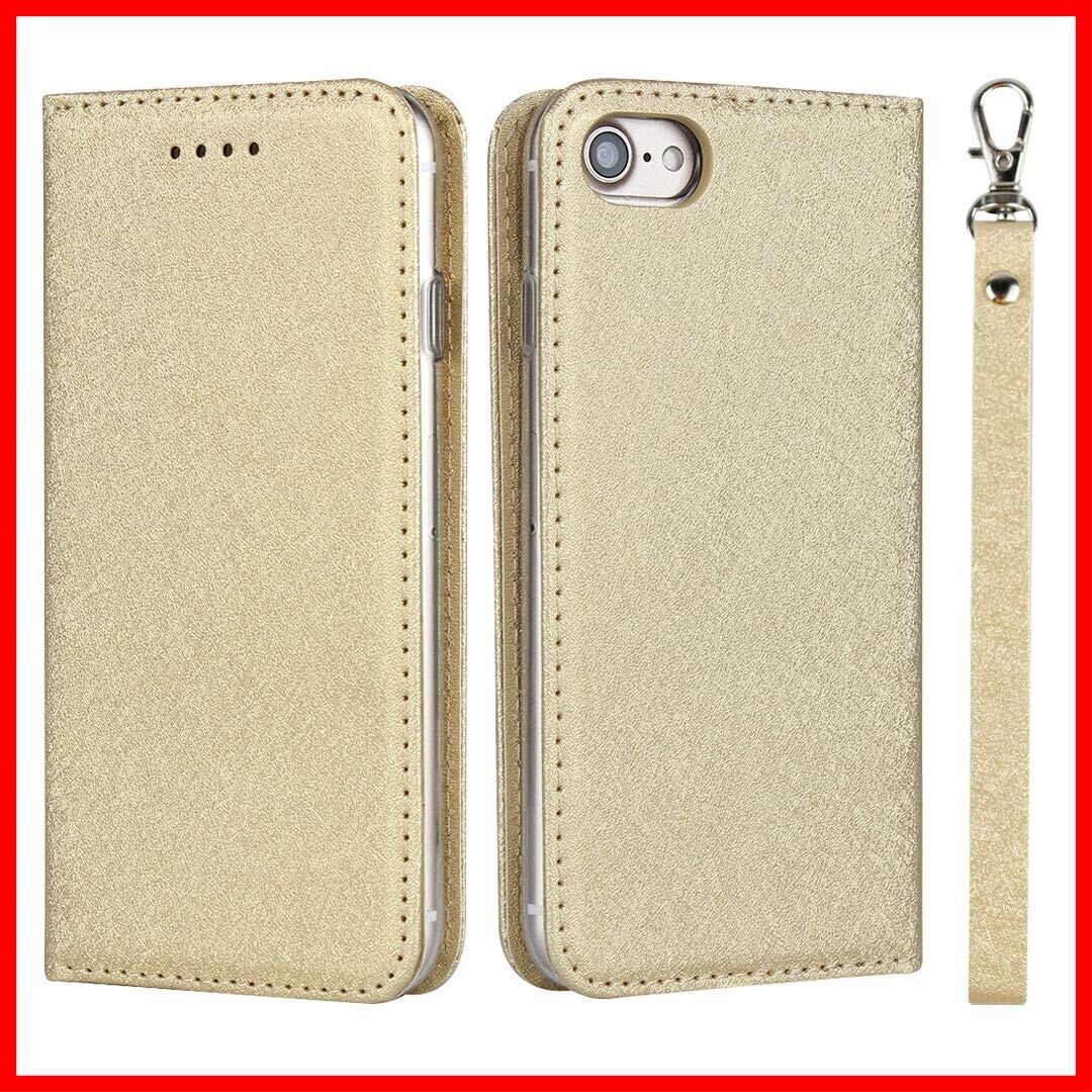 Pelanty for iPhone SE 第3世代 2022/ SE 第2世代 2020 ケース手帳型 for iPhone 7/8 財布型カバー case PUレザー 薄型 スマホケース ストラップ付き ベルトなし カード収納 マグネット式 スタンド機能 アイフォンSE2/ SE3/ 7 / 8 4.7インチ 携帯カバー 滑り止め 全面保護 耐衝撃 軽量 (ゴールド)