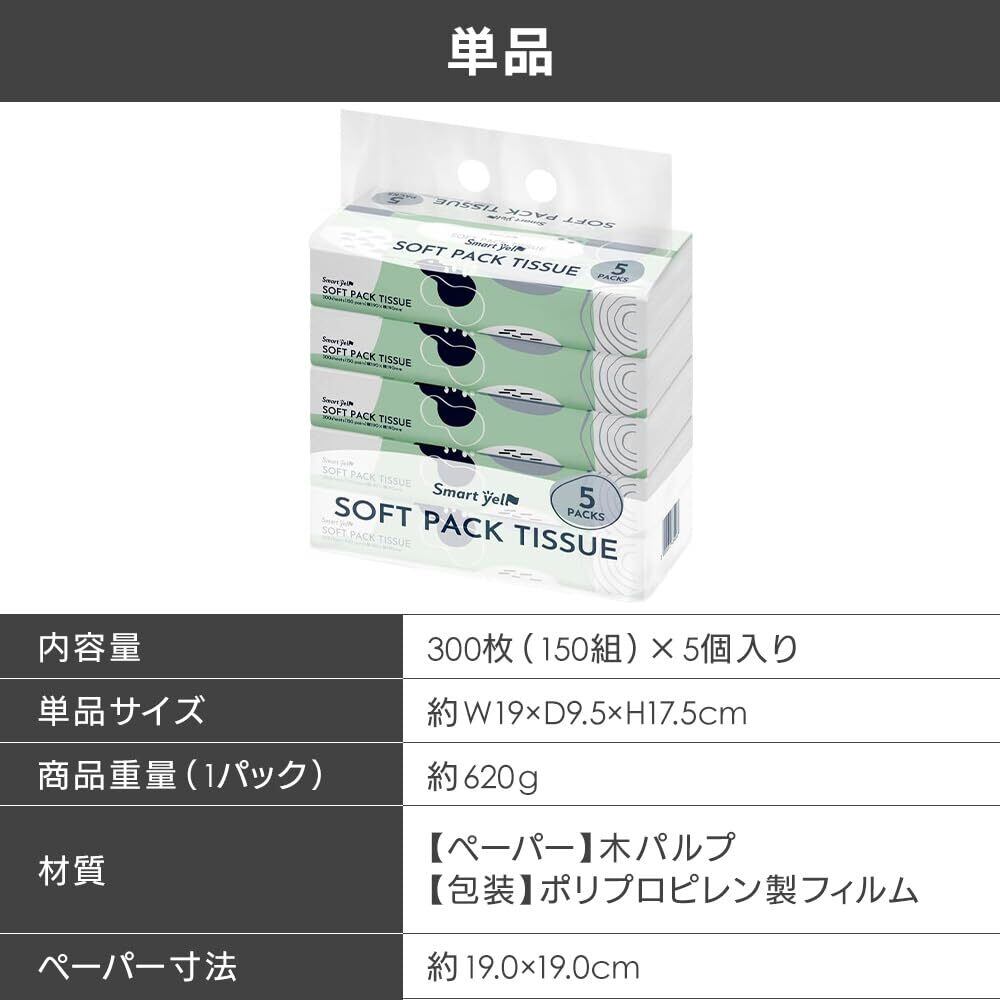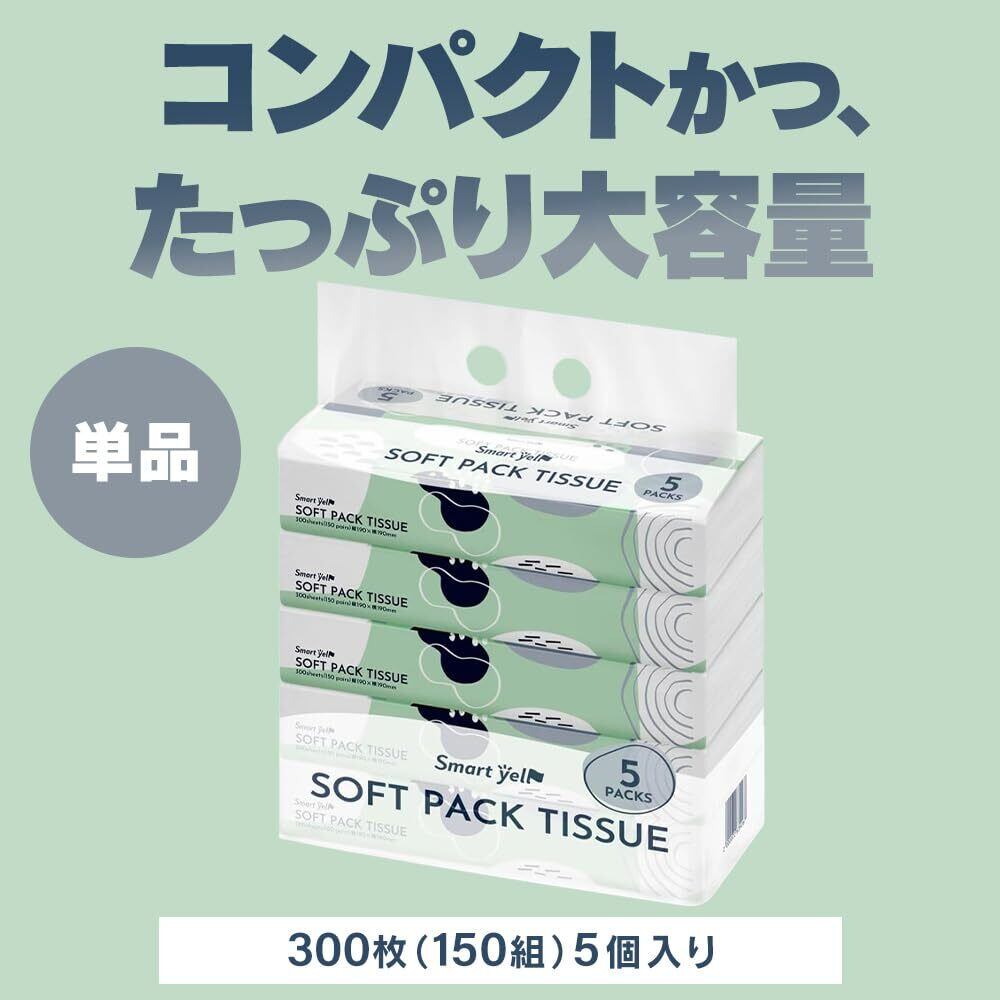 アイリスプラザ(IRIS PLAZA) ソフトパックティッシュ 300枚 (150組)x5パック スマートエール