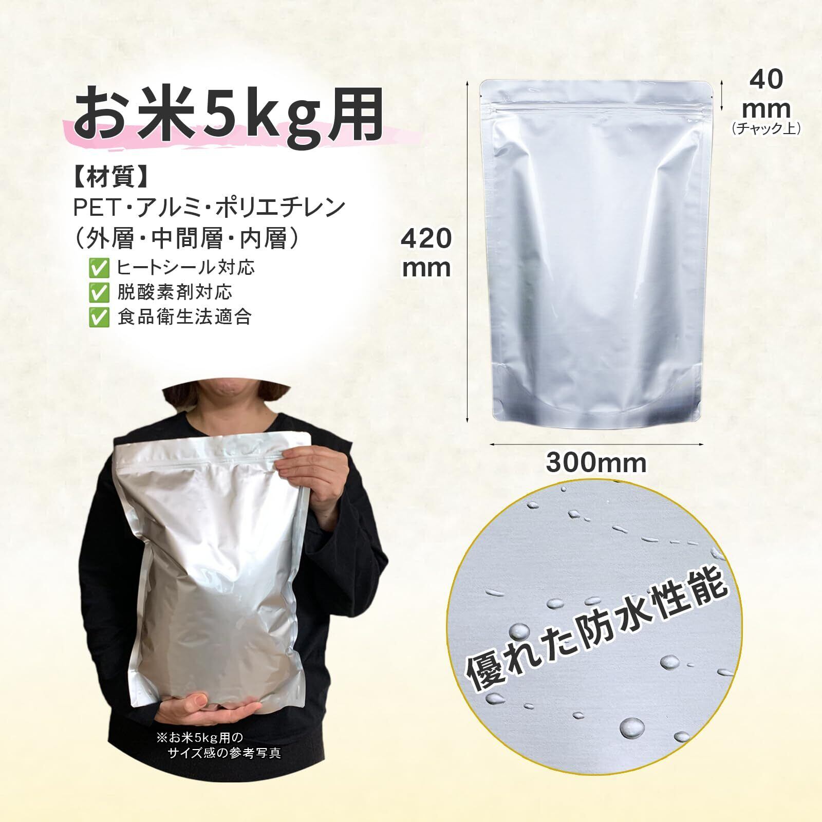 チャック付きアルミ袋米5kg用:サイズ30cm×42cm(5枚入り)