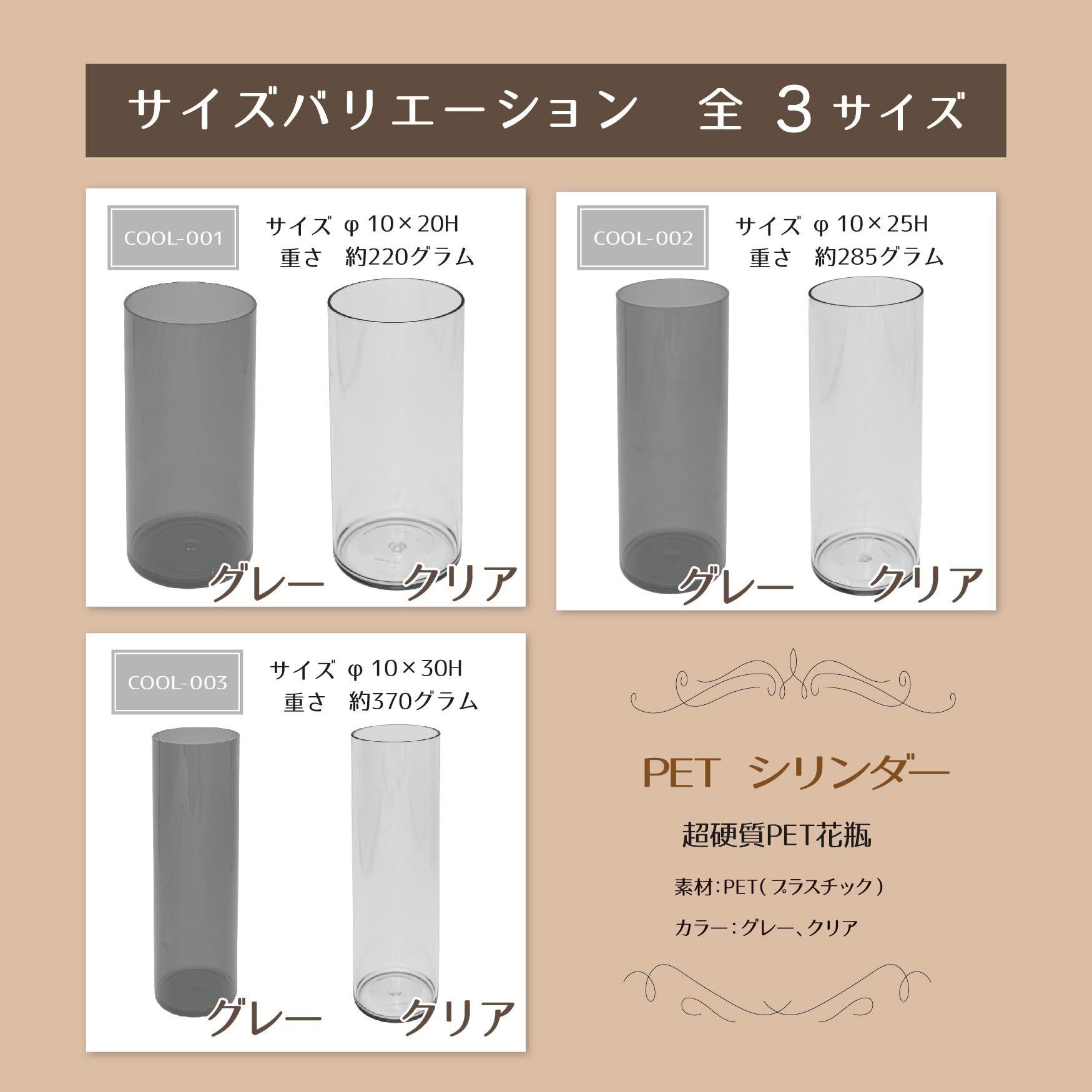 ポピー名古屋 フラワーベース PETシリンダー 直径10cmシリーズ 高さ約20cm 円柱 割れない 花器 cool-001 グレー