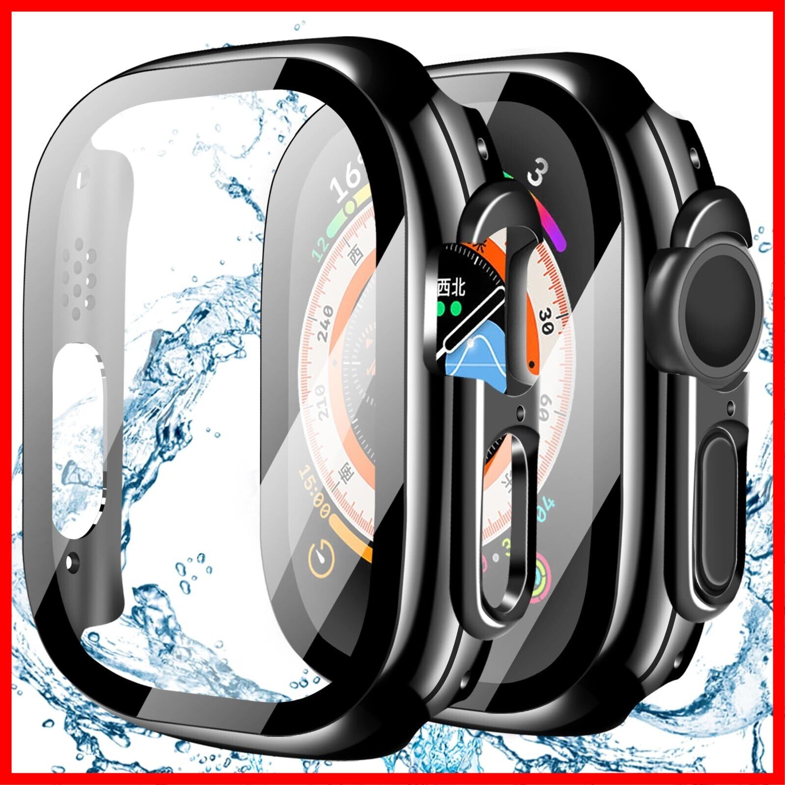 YUGYUG 対応 アップルウォッチ カバー Ultra 3/2/1 アップルウォッチ ケース PC素材 IP68 防水 3D直角エッジデザイン 光沢式 Apple Watch ケース ガラスフィルム 一体型 日本旭硝子材 二重構造 Apple Watch カバー 全面保護 強化ガラス キズ防止(49mm,ブラック) | hananoki