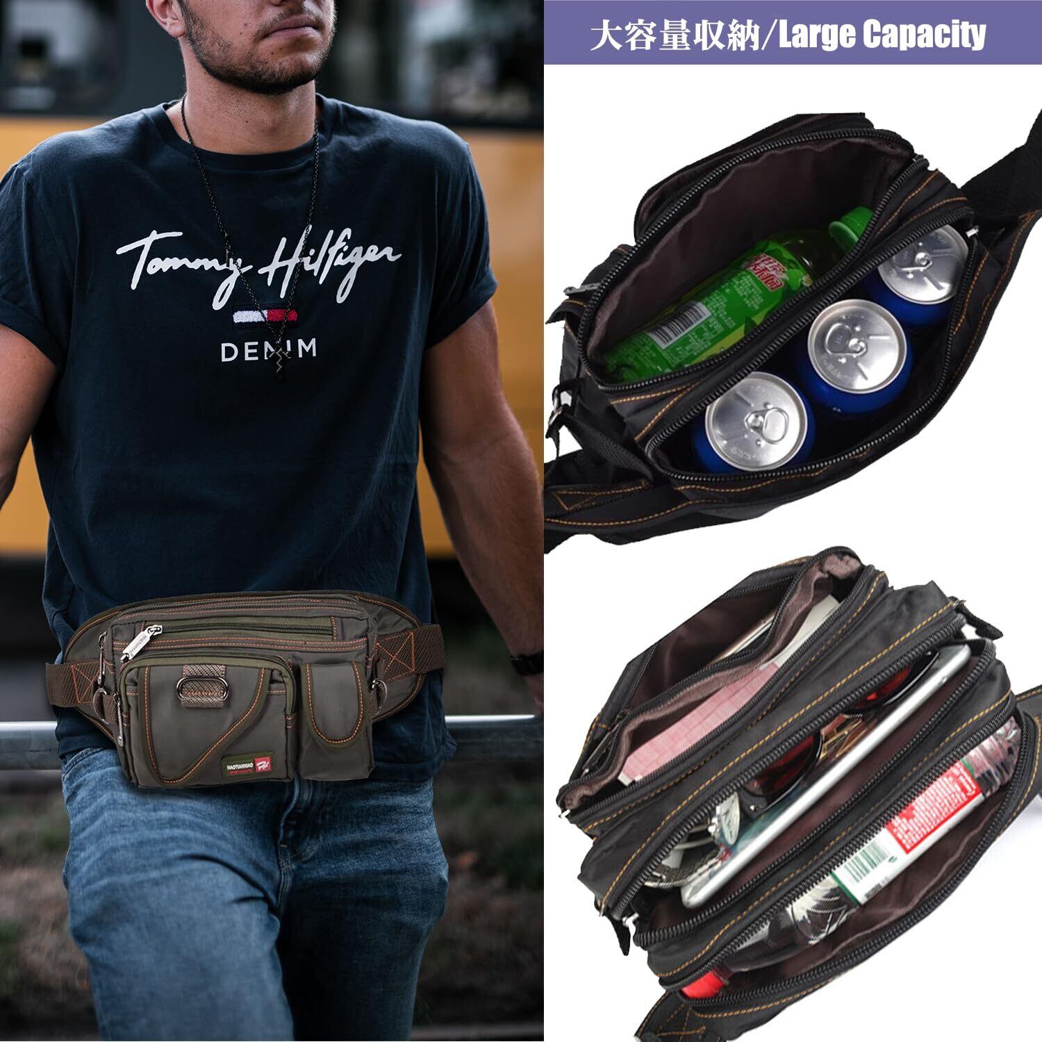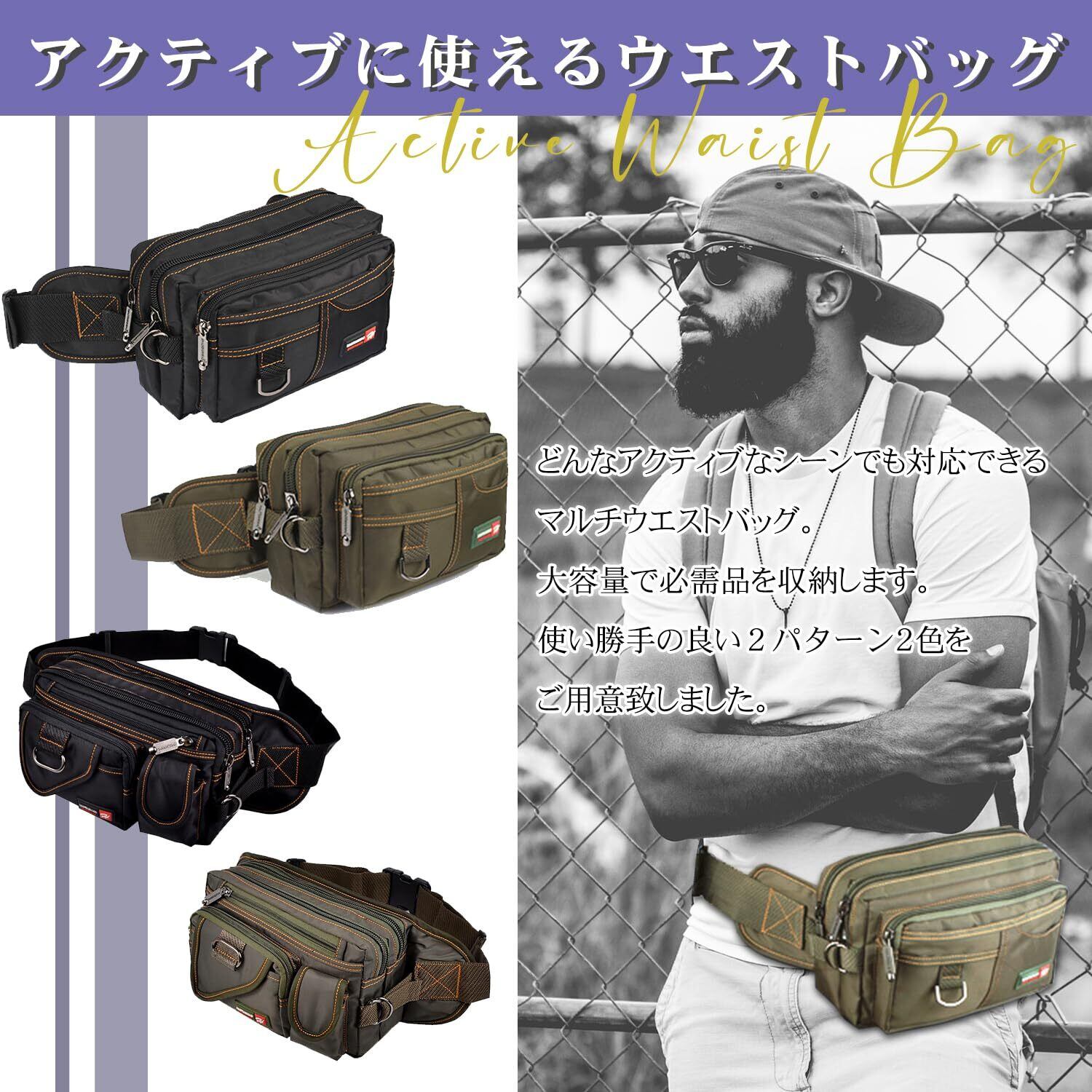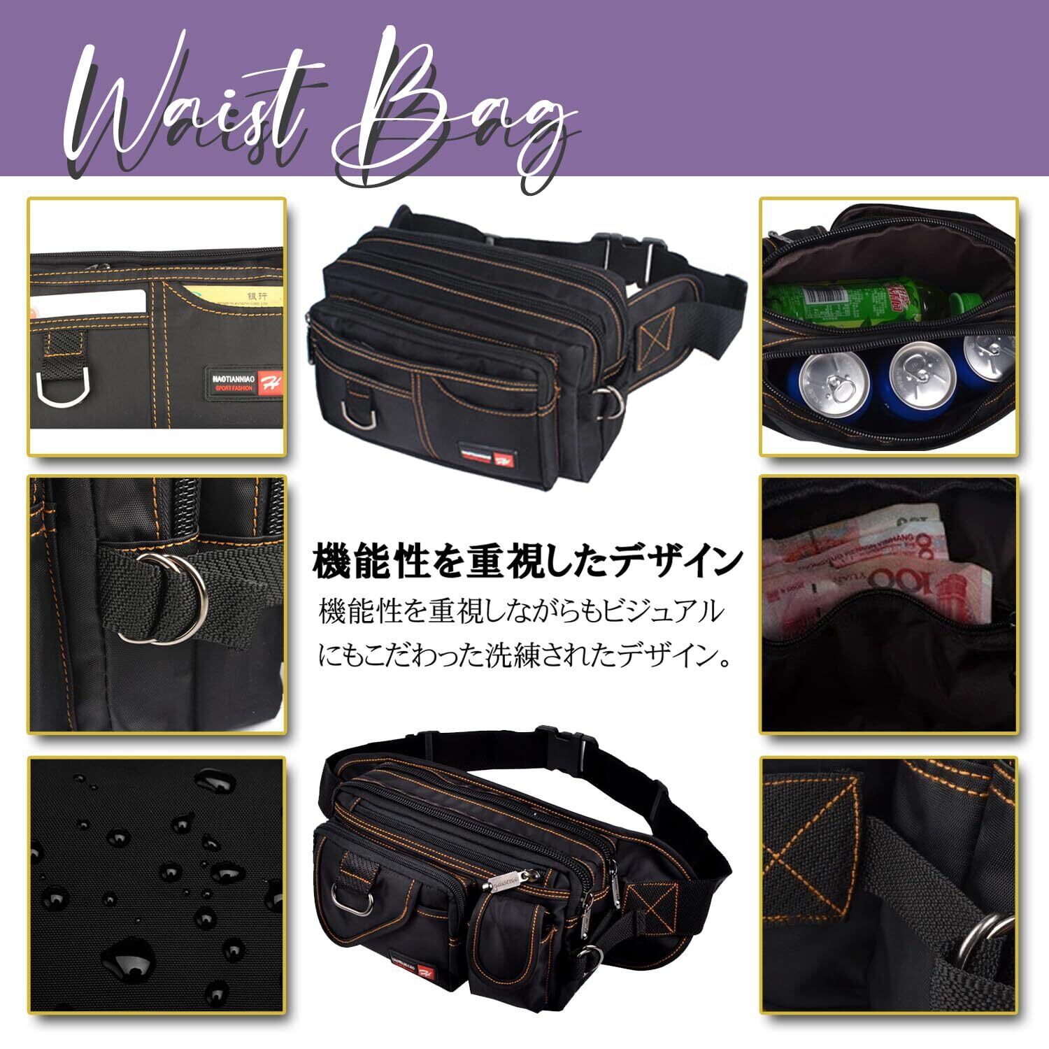 【快適な持ち運び】このウエストポーチは、あなたの日常をもっと便利にします。多機能設計で、必要なものがすぐに取り出せるため、手ぶらでの外出が快適に。日常防水タイプで急な雨にも対応し、大切な物を守ります。