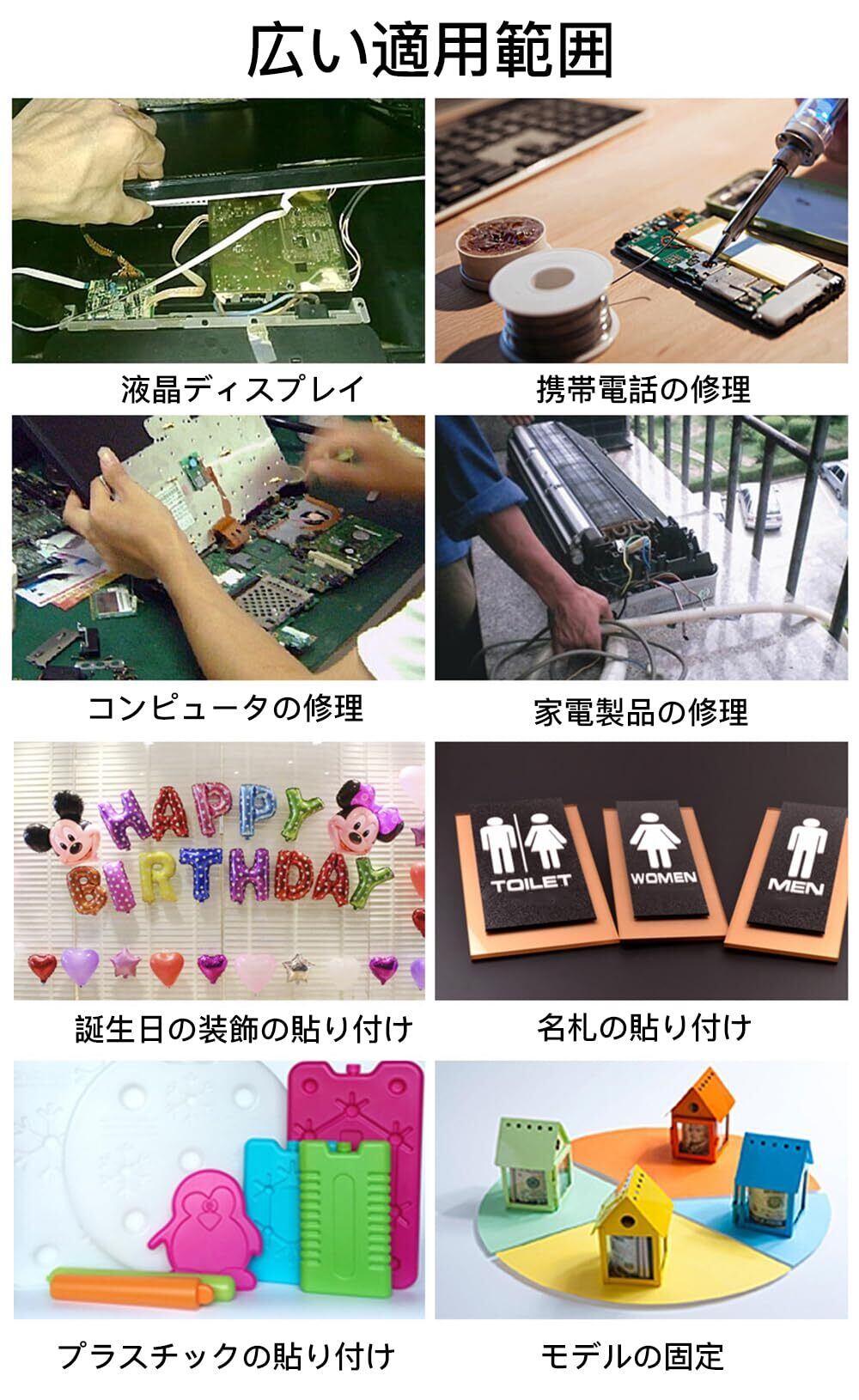 5、携帯電話の修理、液晶パネルの貼り付け加工、おもちゃや自動車などのさまざまな産業で広く使用されています。