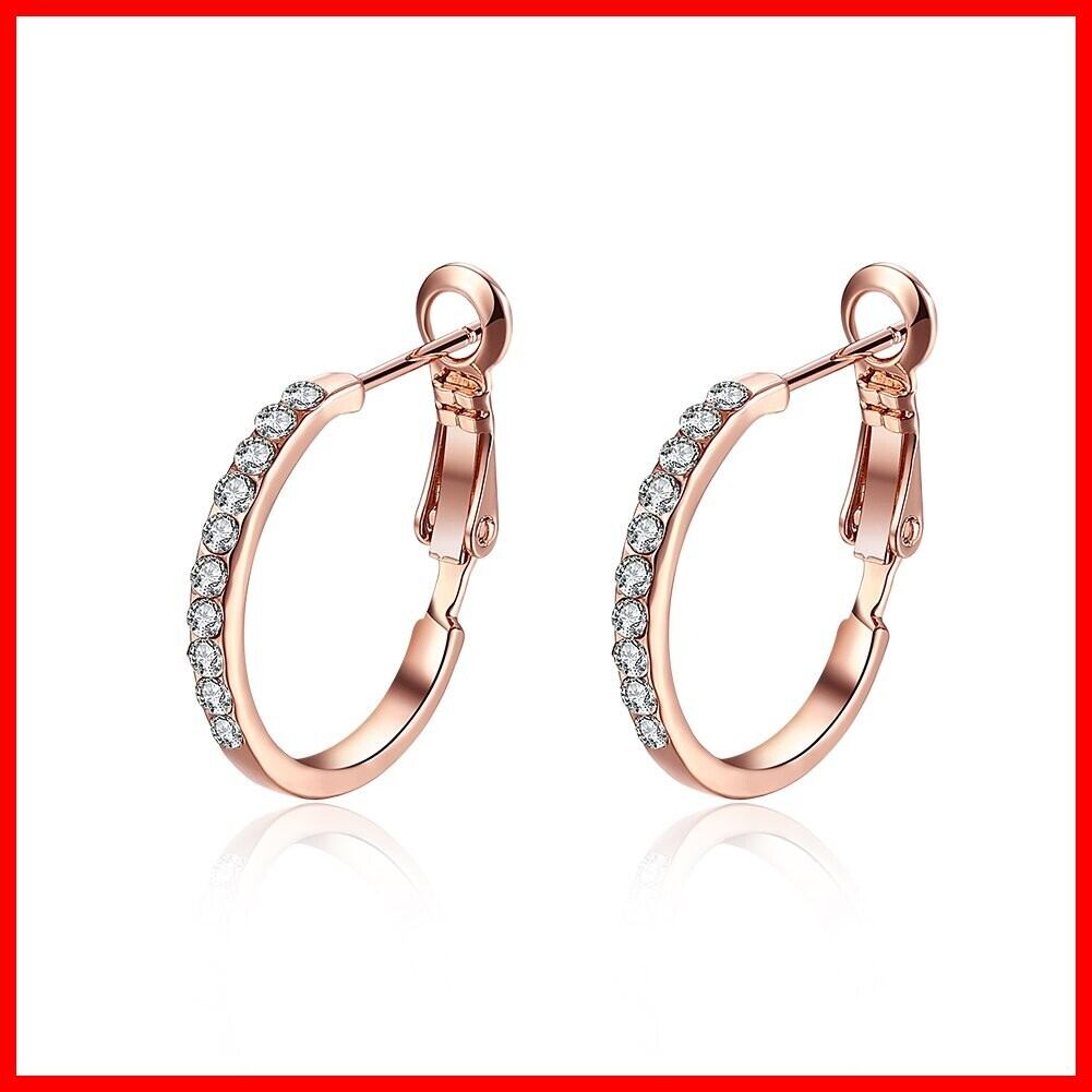 Rockyu ジュエリー ブランド 人気 フープピアス レディース 18k ピンクゴールド カジュアル ラインストーン ファッション アクセサリー