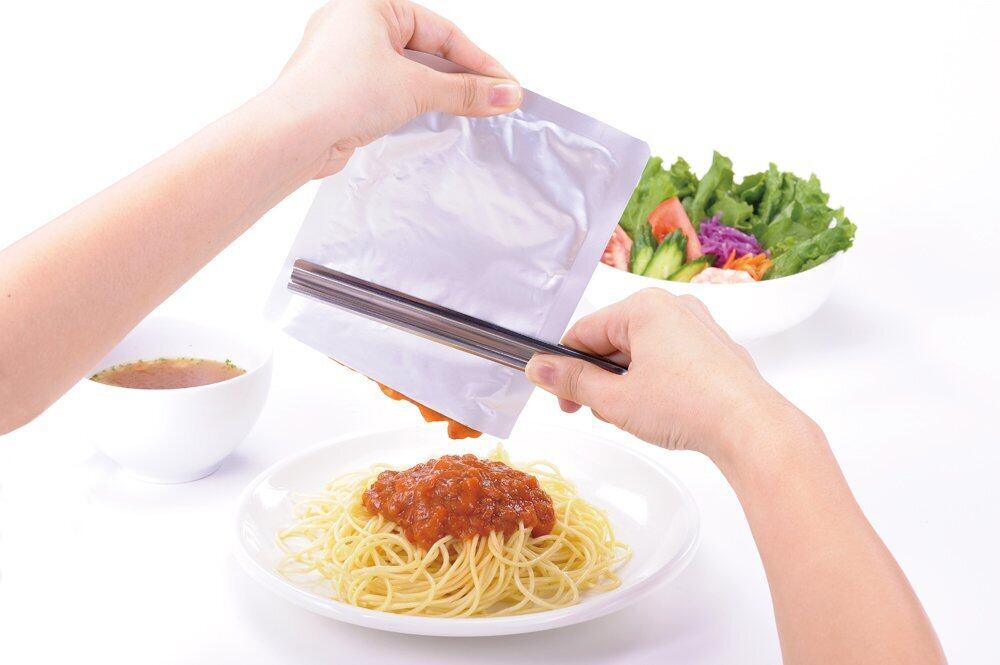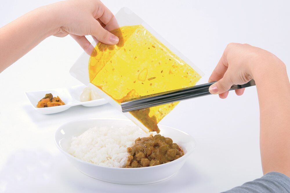 具が残りやすいレトルトパウチや袋入り食材をスッキリ取り出せる