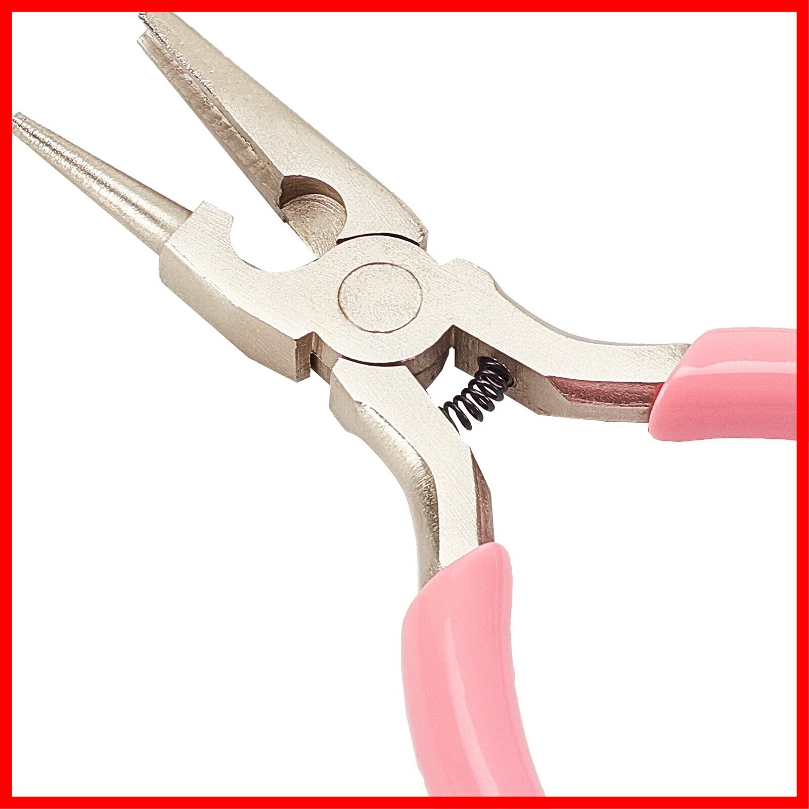SUNNYCLUE 1本 ワイヤーループ ペンチ ワイヤー プライヤー 凹型&丸型ノーズ ラウンドノーズペンチ 丸ペンチ ラウンドプ 極細 先細ペンチ 丸ヤットコ ミニ精密 喰切 ジュエリーペンチ ナイロンジョープライヤー ピン曲げ ワイヤー曲げツール 手芸ペンチ 手芸ツール ペンチセット ヤットコ プライヤーセット ジュエリーツール アクセサリープライヤー ジュエリー作成用 趣味プロジェクト 炭素鋼 ピンク DIYクラフト ハンドメイド