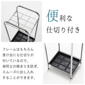 フレームはもちろん、受け皿にも仕切りが付いているため、傘同士の絡まりが起きずスムーズな出し入れが可能です!
