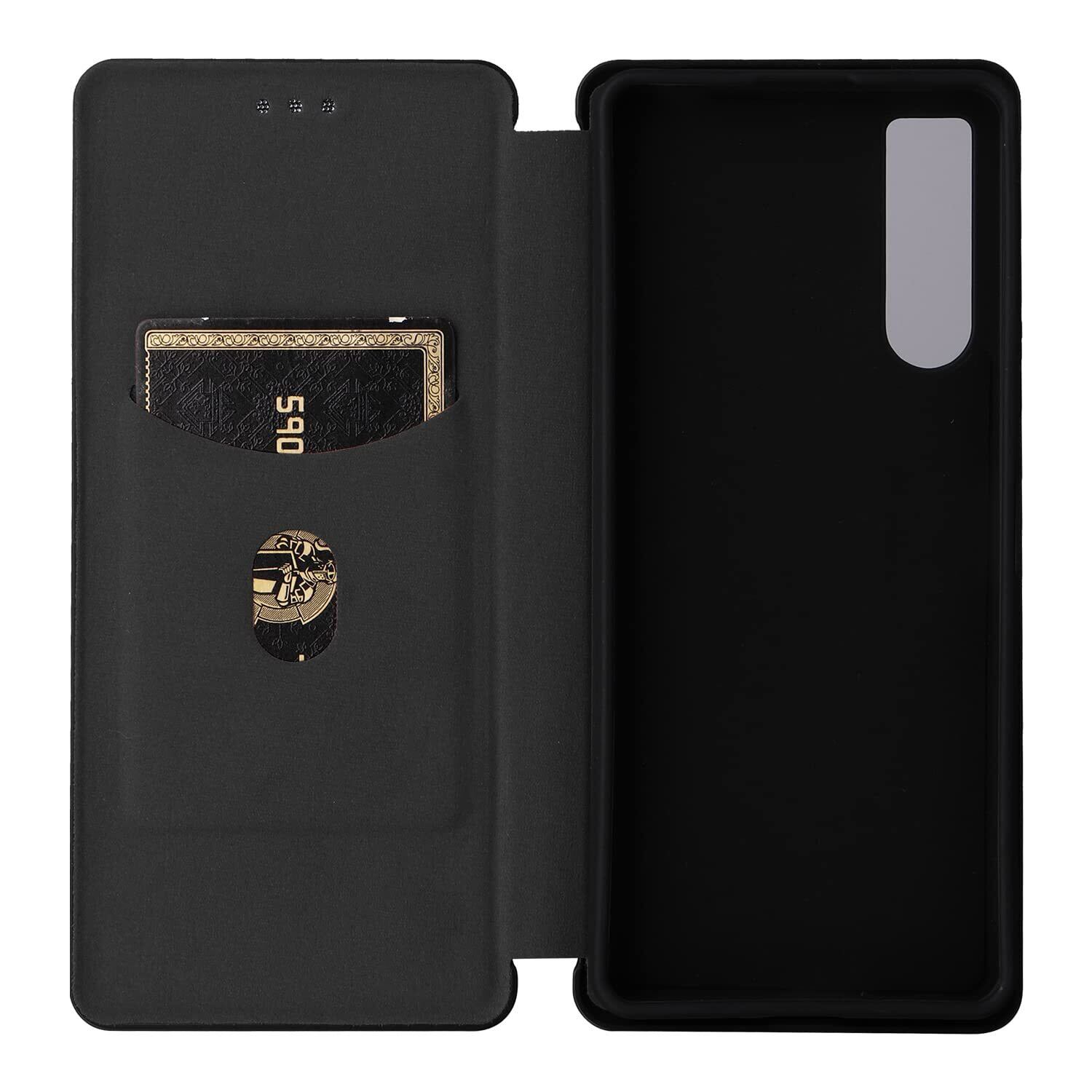 Pelanty for Xperia 10 V ケース手帳型 炭素繊維調 SO-52D SOG11 携帯カバー 背面カバー 軽量薄型 財布型 カード収納 ソニー エクスペリア10v 第5世代 so52d スマホケース マグネット ストラップ付き 耐衝撃 全面保護-ブラック