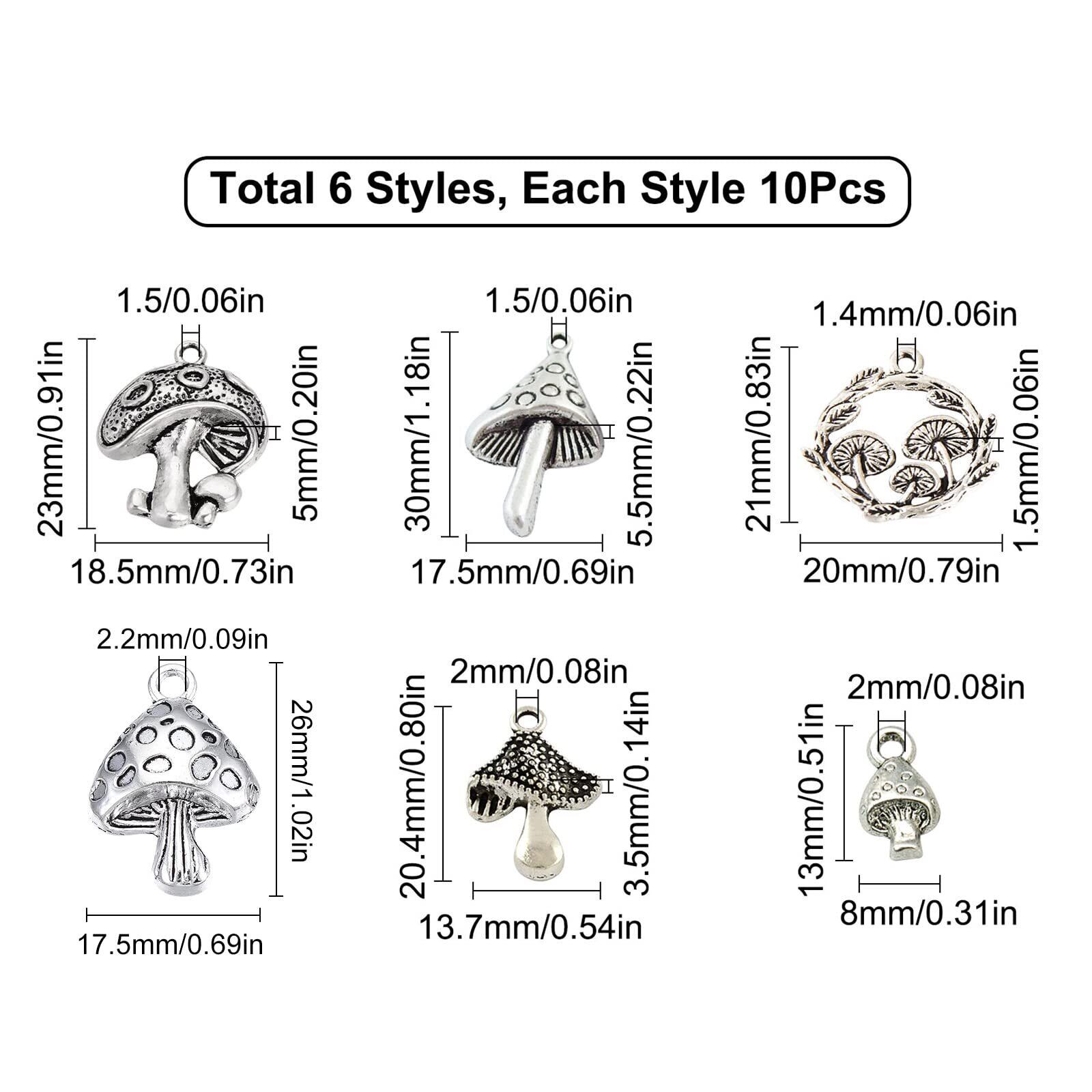 【60個6種キノコチャーム】:キノコチャームは6種類異なるキノコの模様を丁寧に選び、表面は光沢の銀色、レトロな銀色があります。毎種のキノコチャームには異なるスタイルがあり、非常に特別なデザインです。