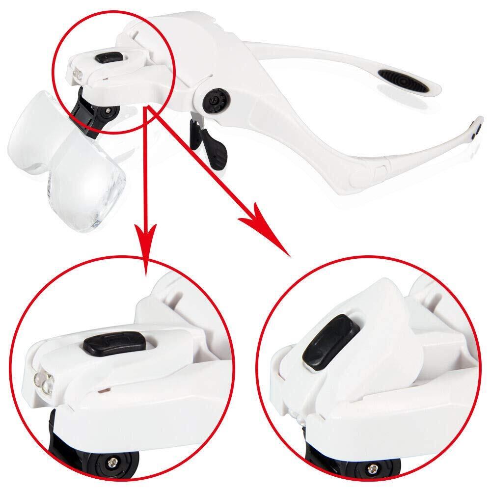 ヘッドマウント拡大鏡 照明付き 拡大鏡 ヘッドバンド ルーペ バイザー LEDライト2個付き 近接作業 ジュエリーワーク 時計修理 美術工芸 読書補助 (White)