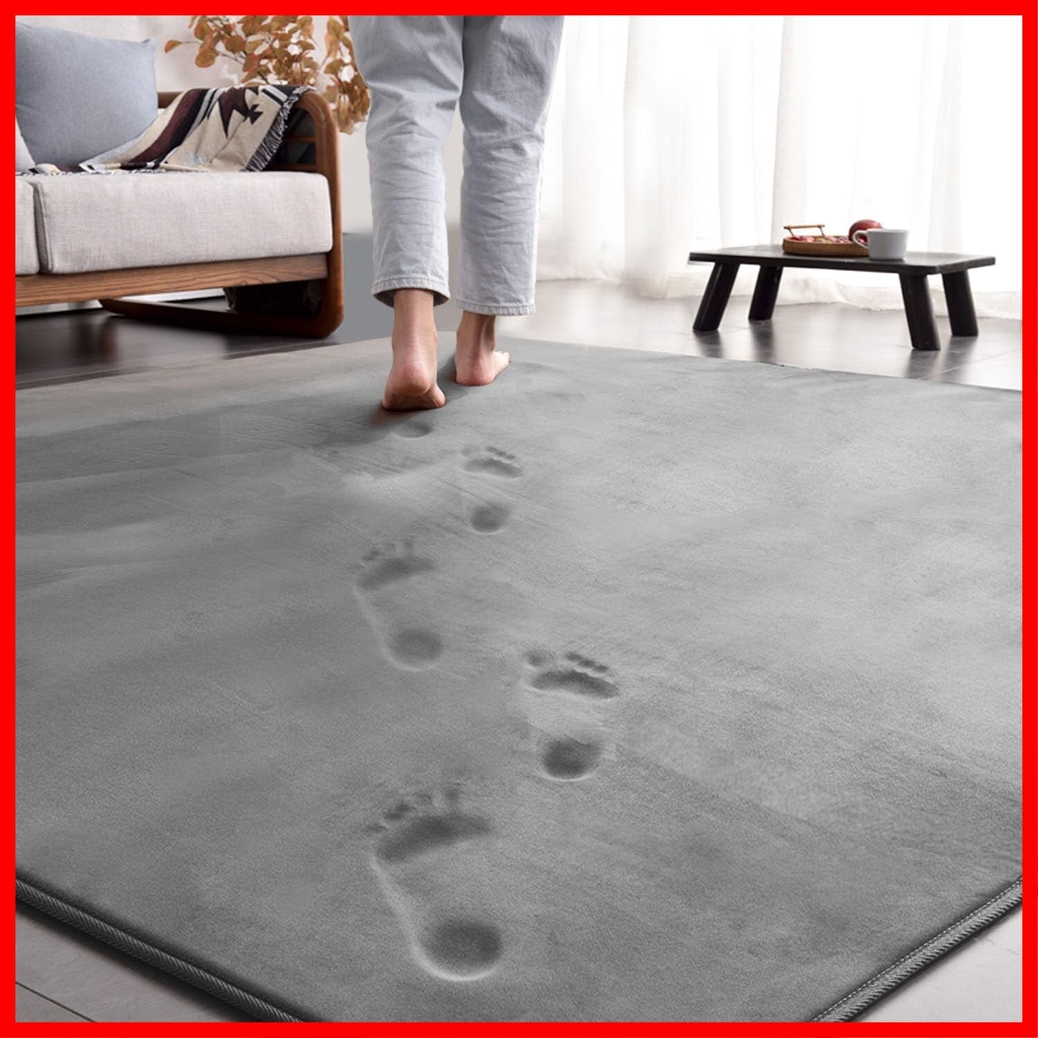 【低反発・分散体圧】この低反発ラグの表面は高密度で良質なフランネル生地を採用しており、ラグの中材には通気性がよいウレタンフォームを採用して、厚さ約10mm、総厚さ約15mm。厚手カーペット踏み心地が良く、転んでもとても柔らかい感じがするのが特徴だ。このカーペットは体圧分散できます、長時間座っても疲れにくい。