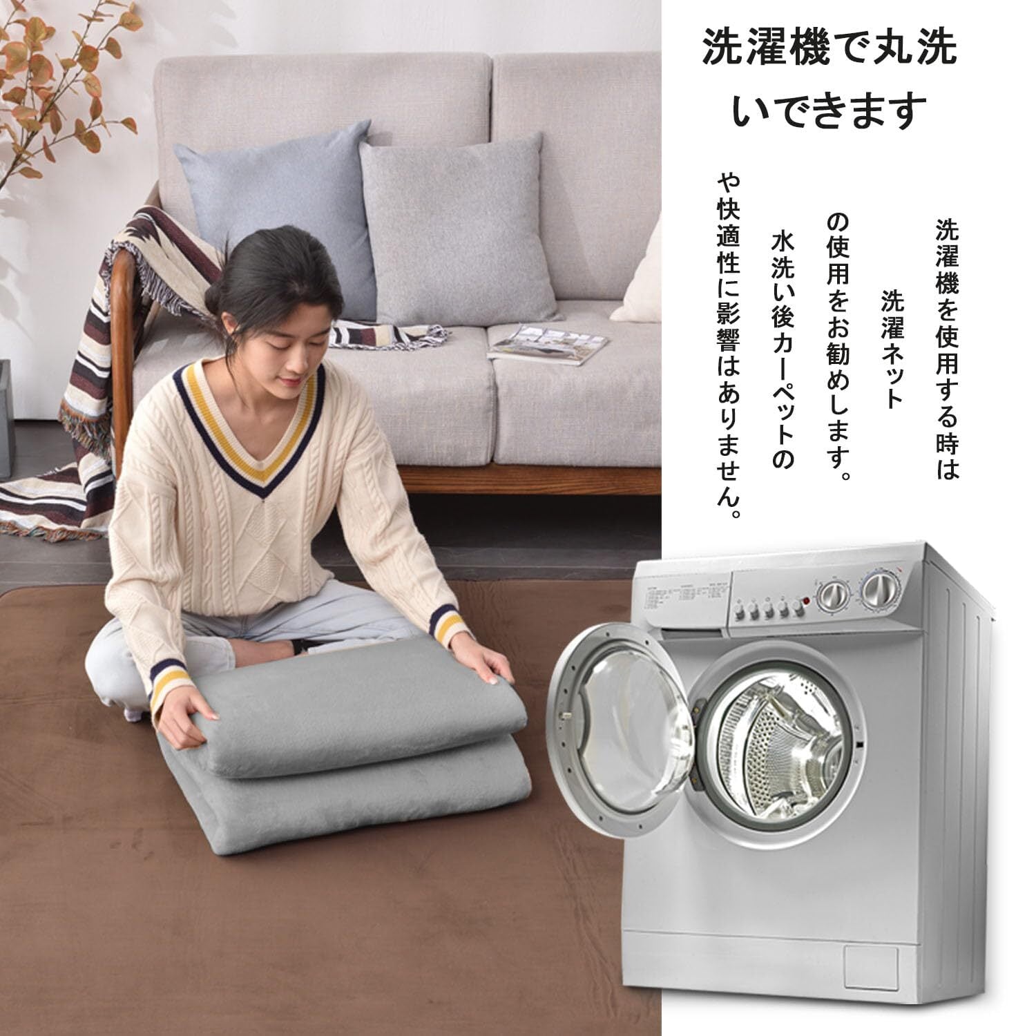 【簡単に掃除】この低反発ラグマットはお手洗いと洗濯機洗い(洗濯ネットの使用をお勧め)に対応しています。掃除機で掃除することができる、低反発ラグ洗えるのフランネルの毛足が適切な長さで、ゴミやほこりが絡まりにくい、お掃除がしやすいです。