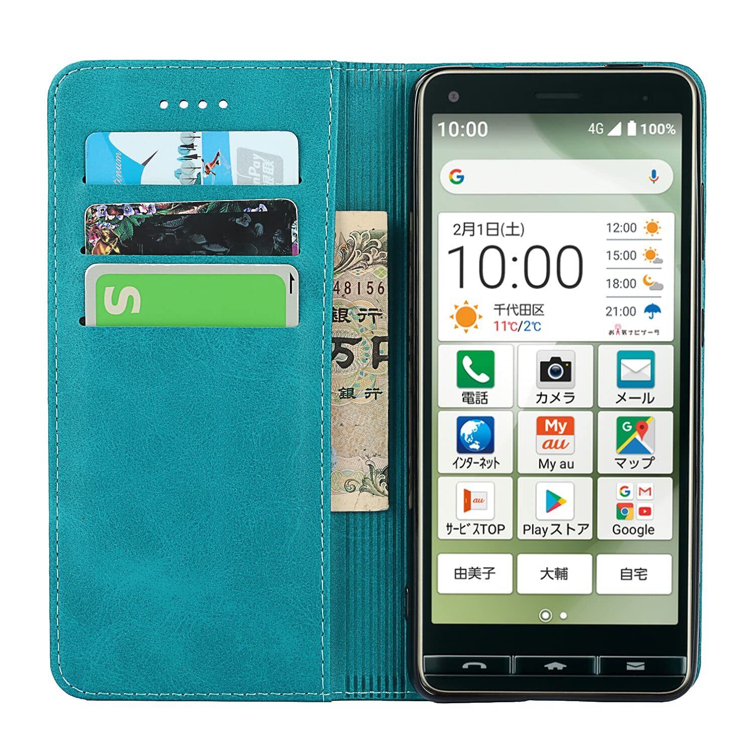 BASIO4 KYV47 ケース かんたんスマホ2 A001KC ケース 通用 手帳 カバー BASIO 4 京セラ ベイシオ4 KYV47 ケース スマホケース 携帯カバー 手帳型 カバー case 内蔵マグネット 携帯カバーカード入れ スタンド機能 レトロ ターコイズ | hananoki