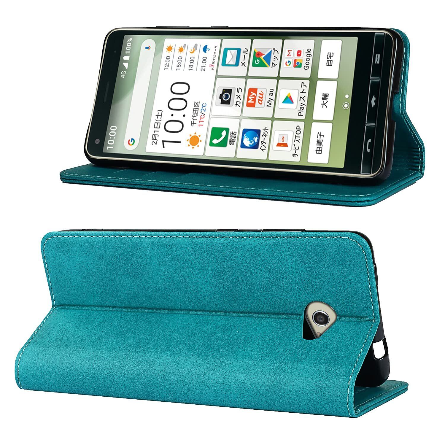 BASIO4 KYV47 ケース かんたんスマホ2 A001KC ケース 通用 手帳 カバー BASIO 4 京セラ ベイシオ4 KYV47 ケース スマホケース 携帯カバー 手帳型 カバー case 内蔵マグネット 携帯カバーカード入れ スタンド機能 レトロ ターコイズ