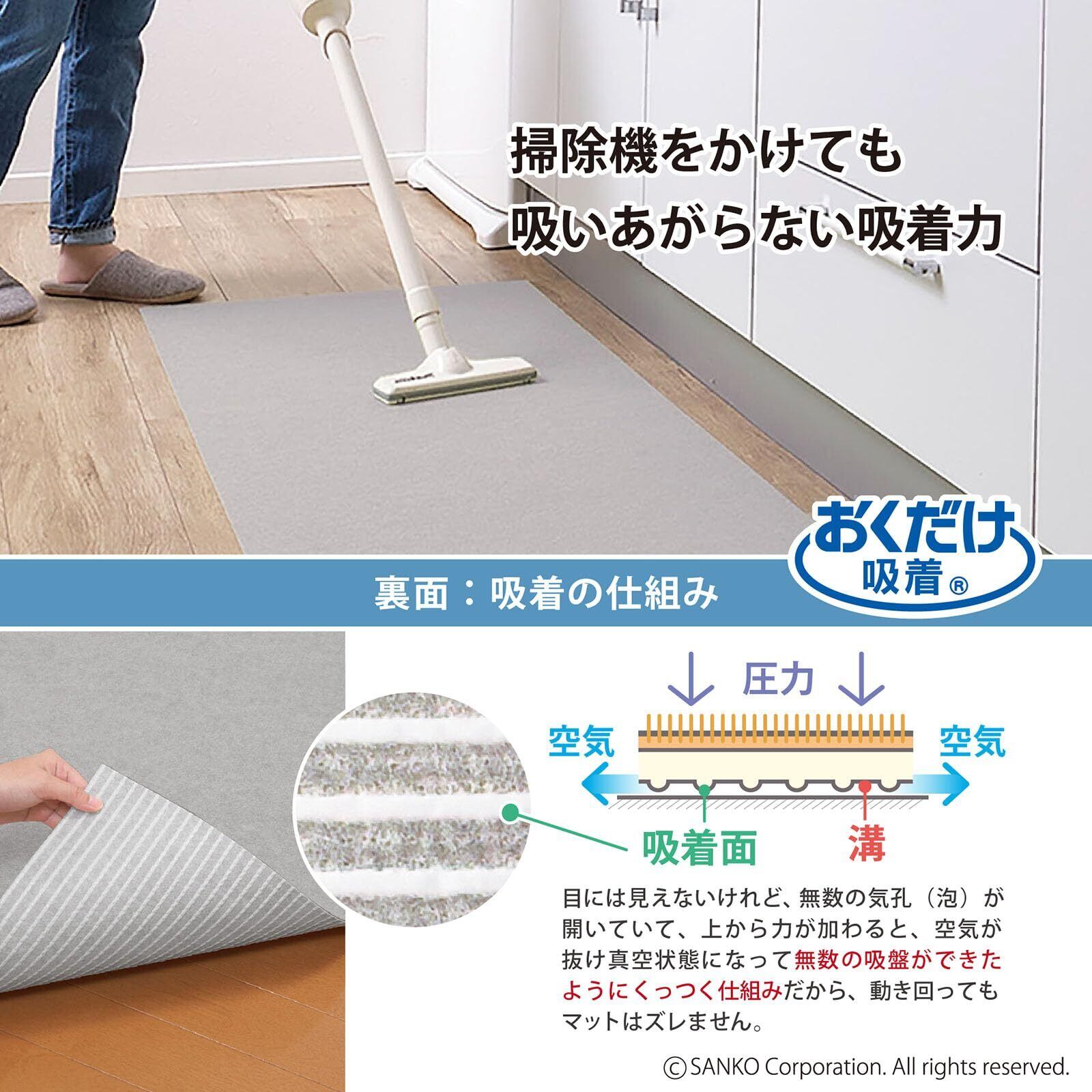 【日本製 撥水 消臭 洗える】サンコー キッチンマット ずれない 台所マット ロング 60×180cm グレー おくだけ吸着 KY-25
